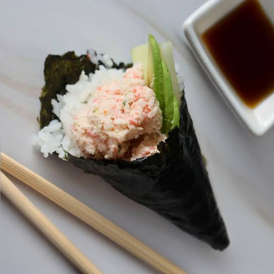 2 conos de Tampico, arroz, pepino, surimi y aderezo de Tampico
