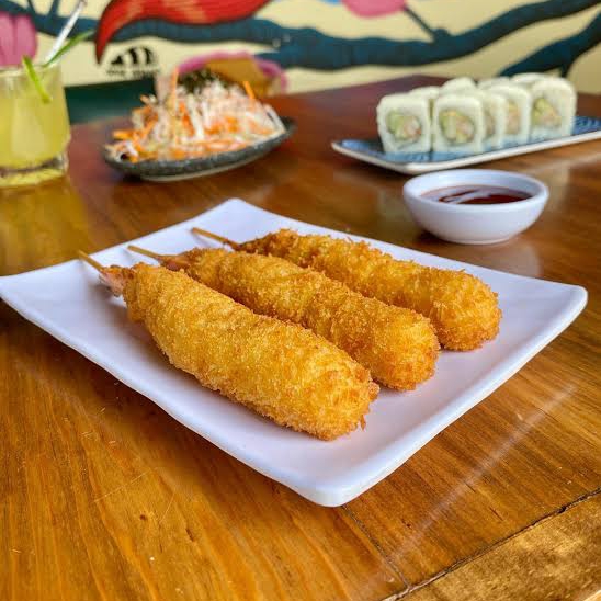 10 pzas Relleno de queso crema, pepino, surimi, afuera empanizado