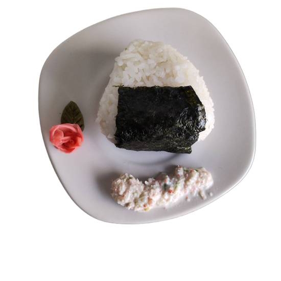 2 pzas Triangulo de arroz de sushi, relleno de queso crema, Surimi y aderezo de Tampico