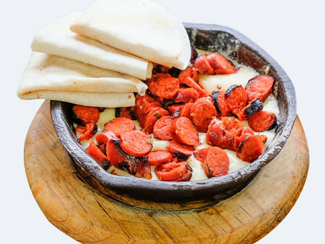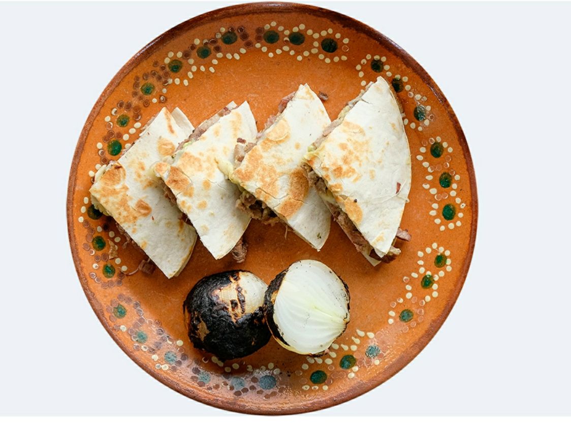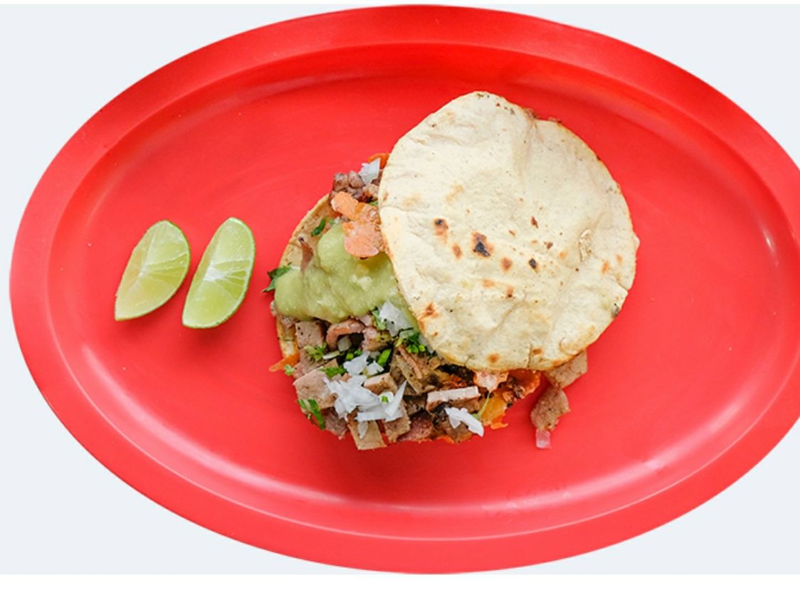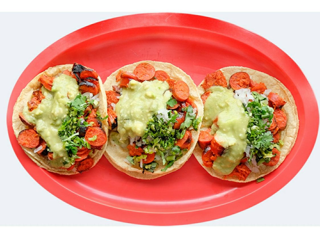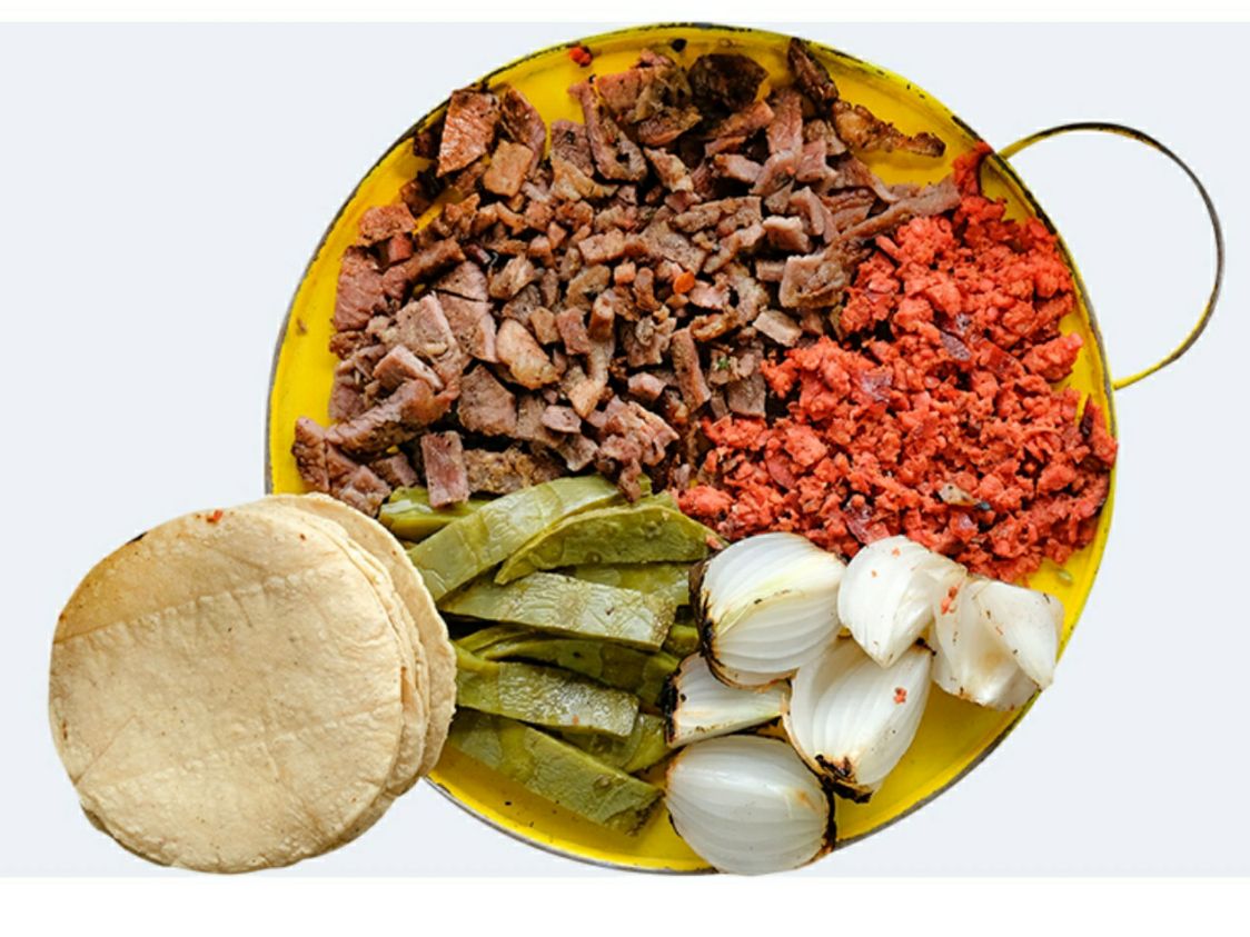 aprox. 100gr de carne de sirloin 100 gr de longaniza, nopales, cebollitas, guacamole, tortillas (peso en crudo )