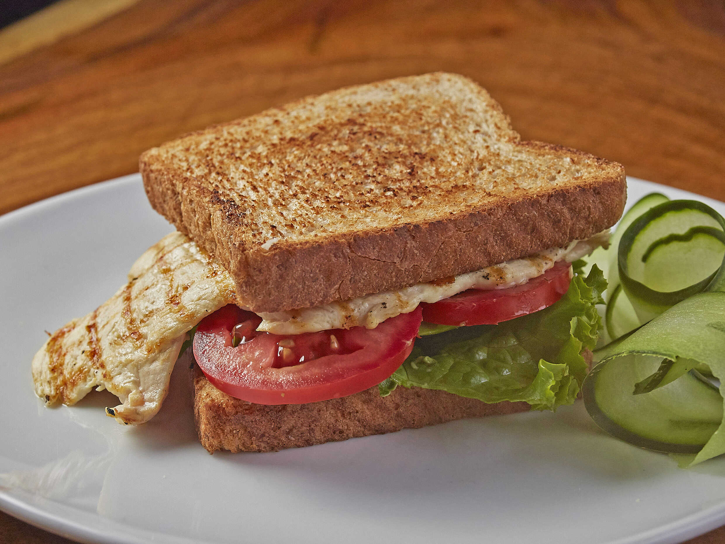 Sándwich de Pechuga Asada Contiene: pechuga asada(70gr aprox), mayonesa, lechuga, aguacate, jitomate, picante, quesillo.