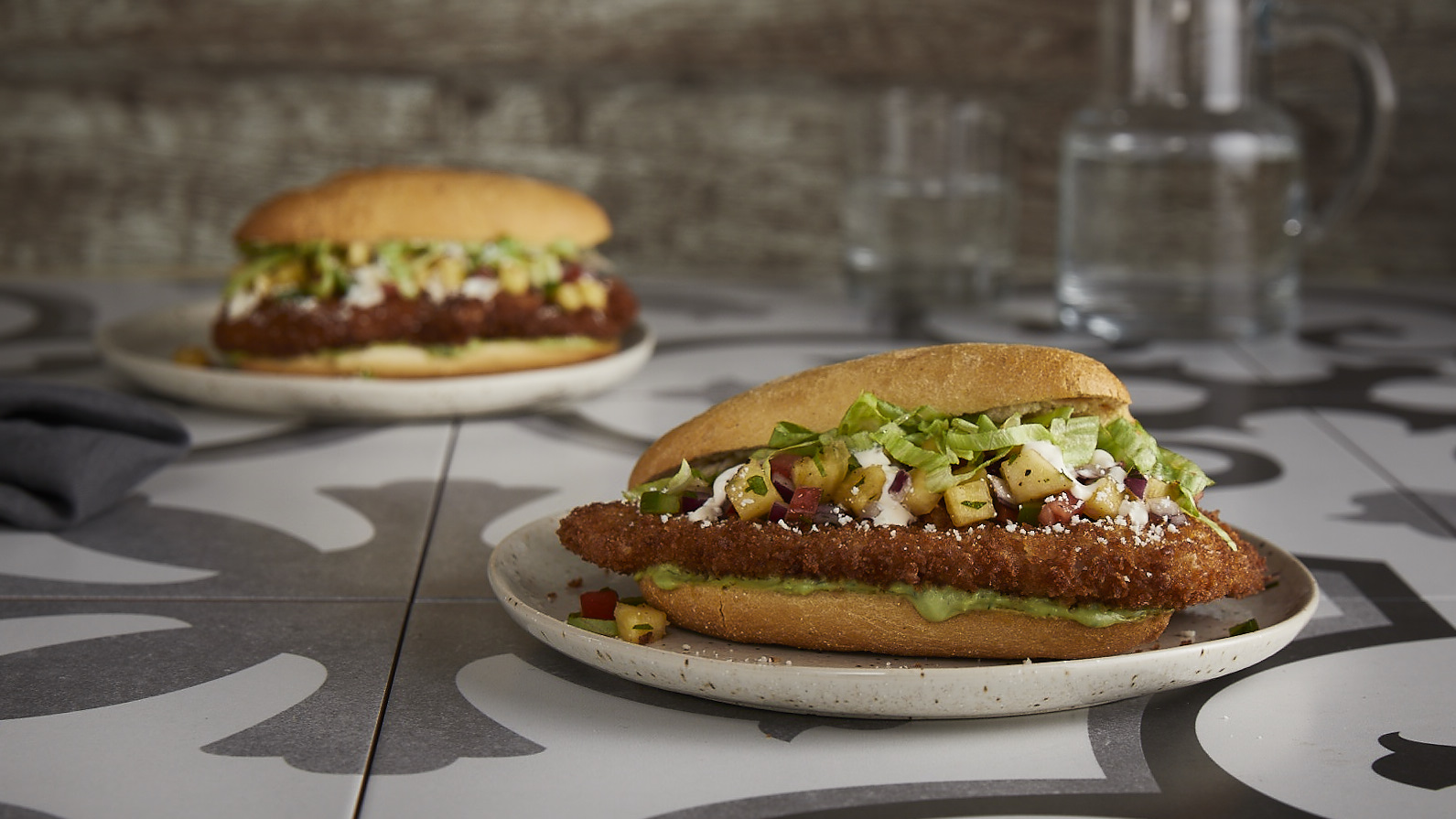 torta grande 16 cm rellena de lechuga,tomate,mayonesa ,70 gramos de milanesa de pollo(Eliges picante ,chilpocle o raja)