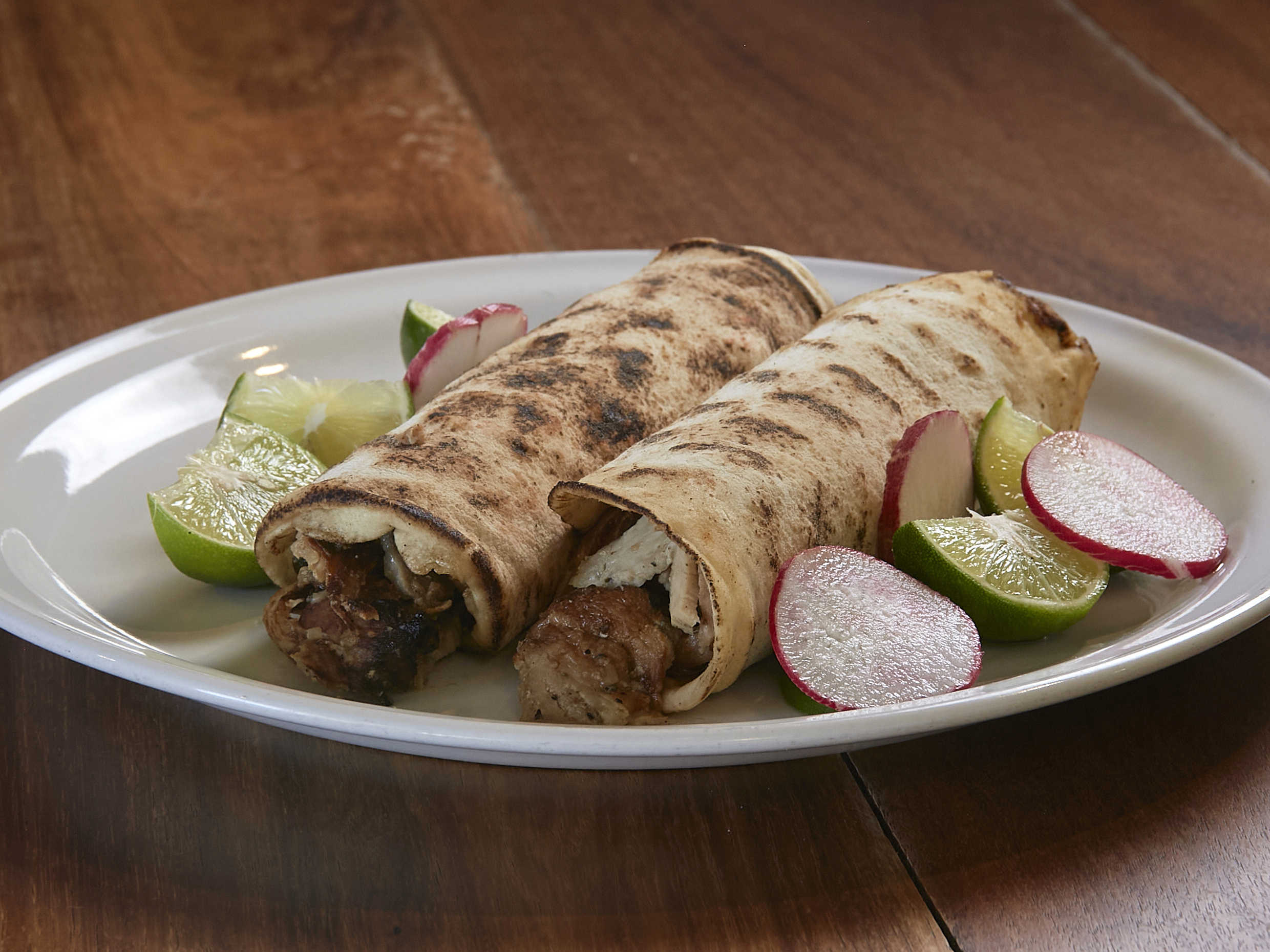 Incluye 3 piezas de pan árabe, 3 piezas de tortillas de maíz, limones, cebolla asada y salsa.