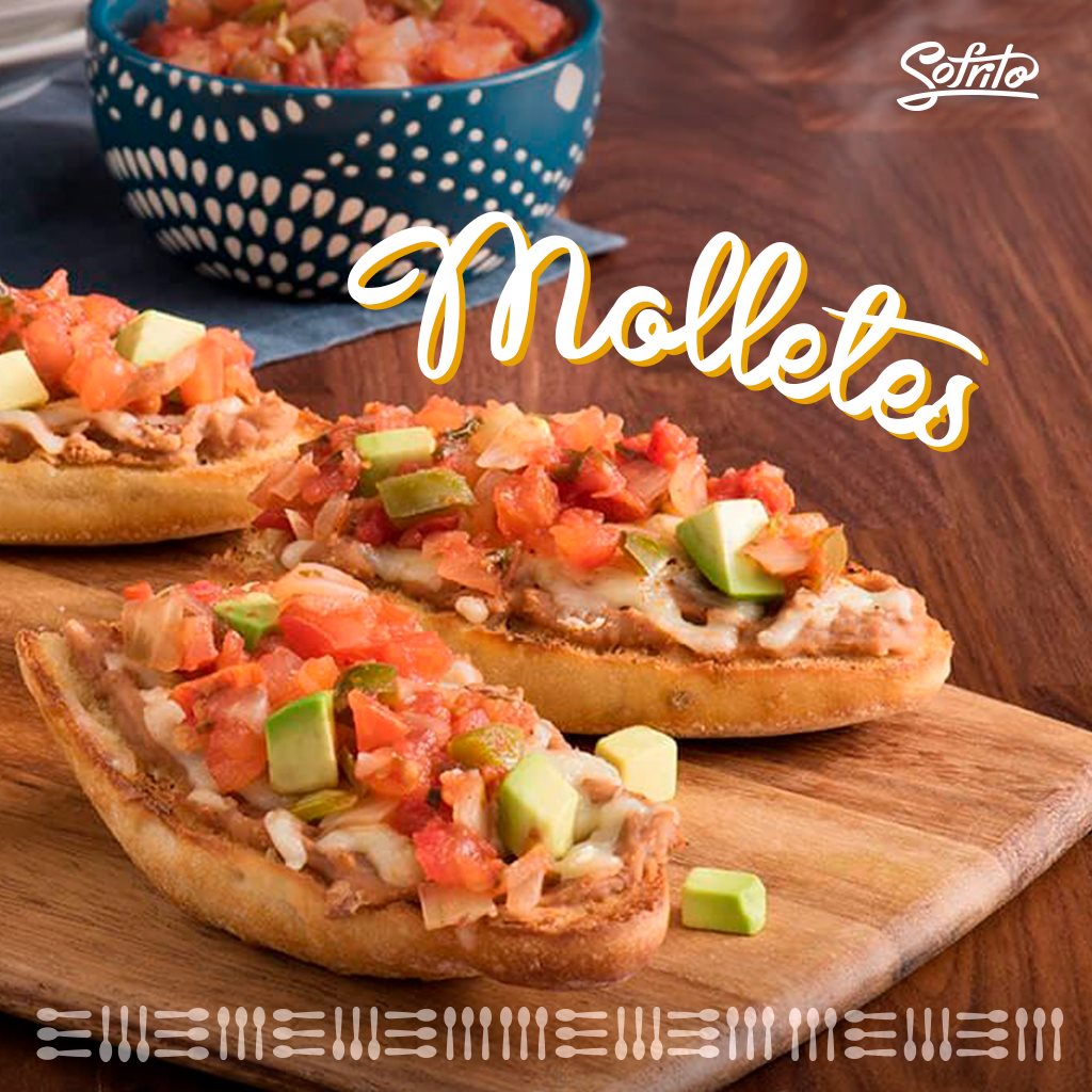Dos piezas servidas con frijoles refritos, chorizo, gratinado con queso y acompañado con pico de gallo.