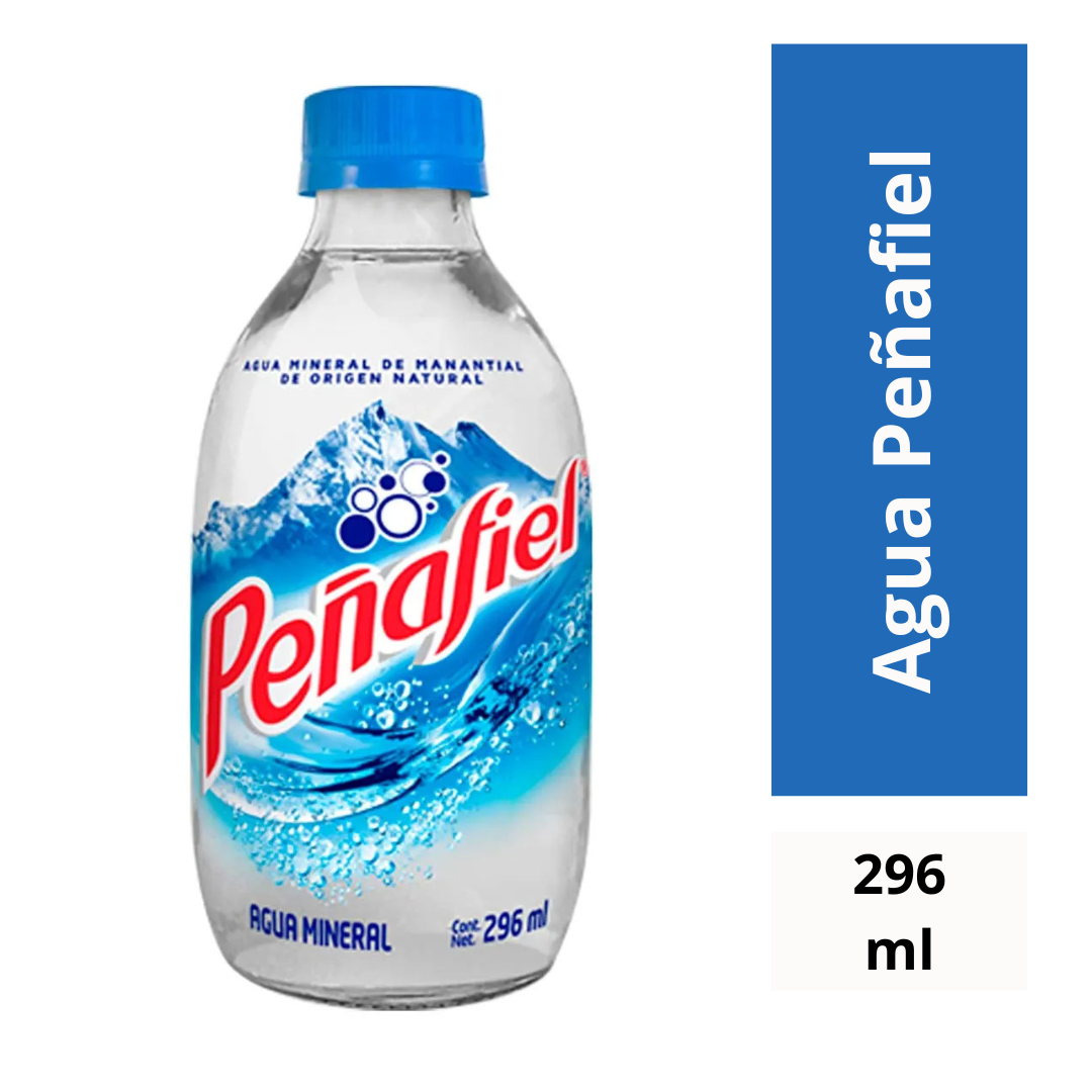 Agua mineral Peñafiel gasificada en presentación de 296 ml. Refrescante, ligera y perfecta para acompañar cualquier platillo o bebida.