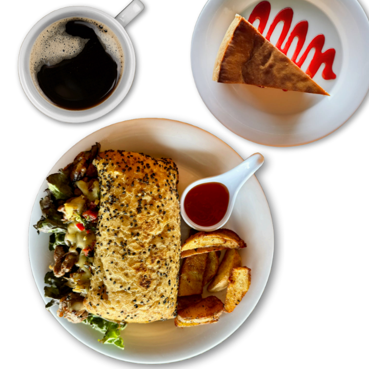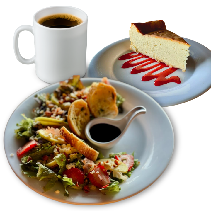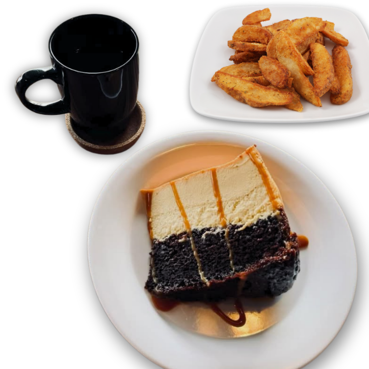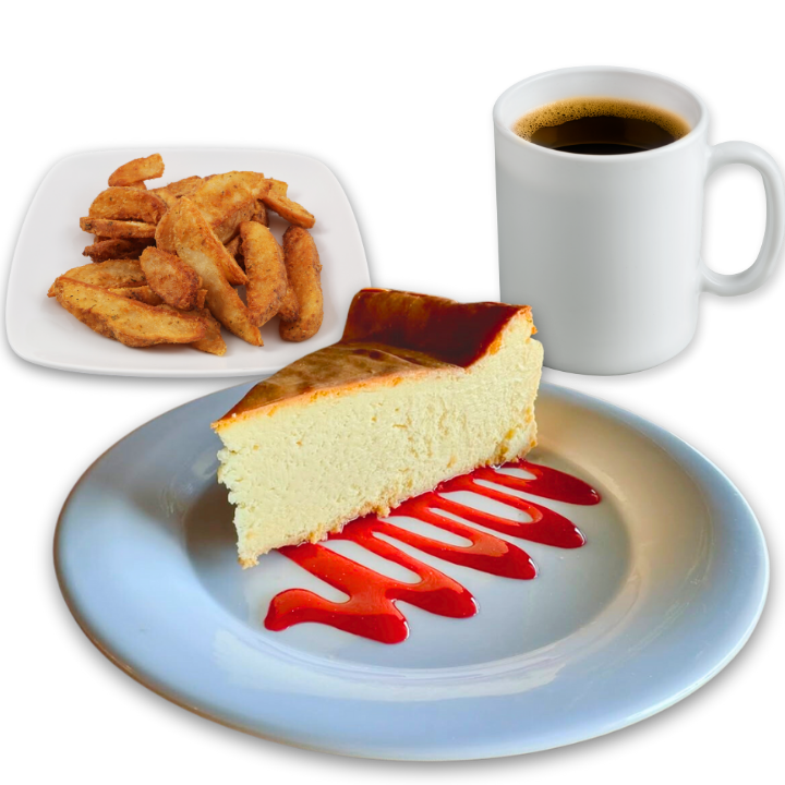 Disfruta el balance perfecto entre dulce y salado con nuestros combos de postres. Incluye un café del día, nuestro irresistible Cheesecake, y una porción de crujientes papas gajo. Ideal para consentirte en cualquier momento del día.
