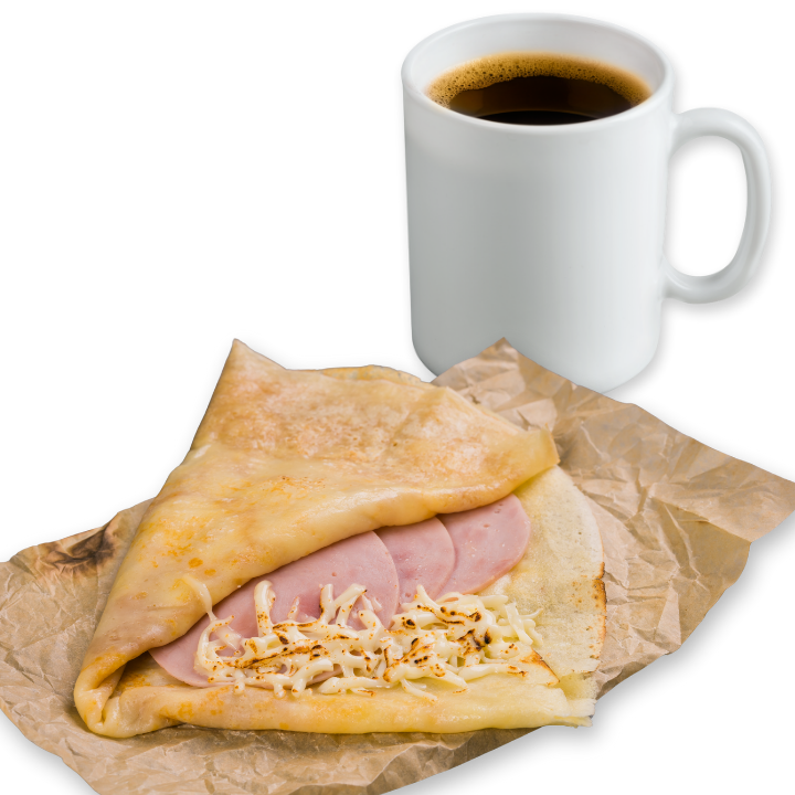 Disfruta una crepa salada recién preparada, elige tu relleno favorito entre nuestras opciones y acompáñala con un café del día o una infusión frutal.