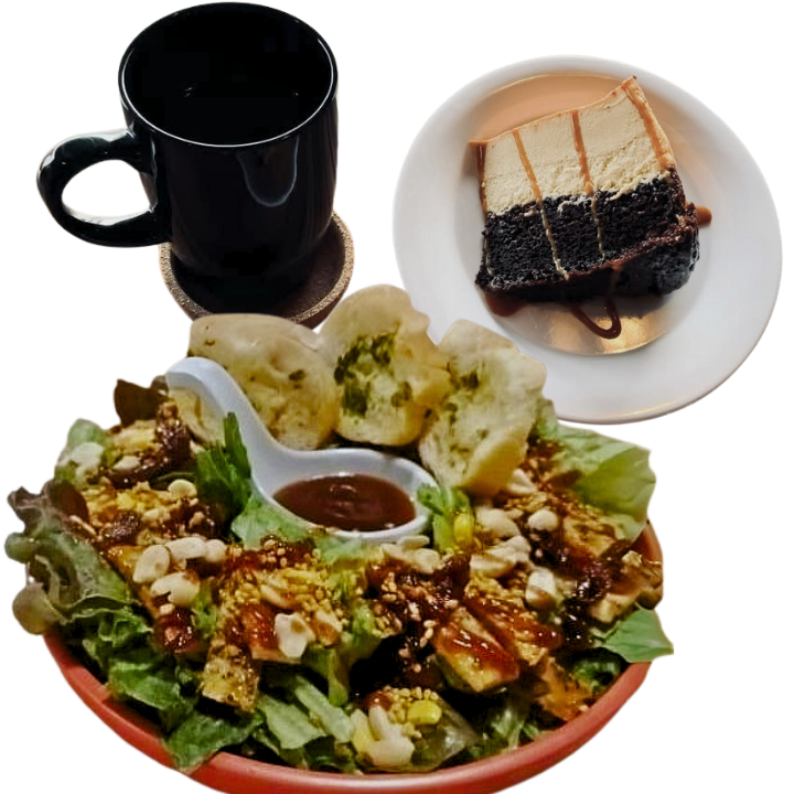 Disfruta nuestros irresistibles combos: lleva nuestra fresca y deliciosa Ensalada Pollo BBQ, acompañada de un café del día o un refresco de 355 ml, y el postre que más se te antoje… ¡todo por un precio especial!