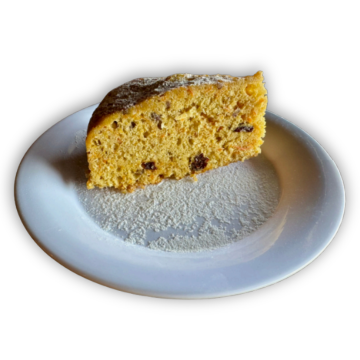 Una rebanada de nuestro delicioso panqué de zanahoria artesanal, suave y eponjoso, elaborado con ingredientes frescos y un toque casero.