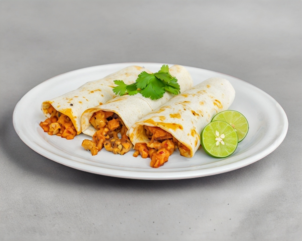 Soya marinada tipo árabe, doble tortilla de harina y doble porción de queso
