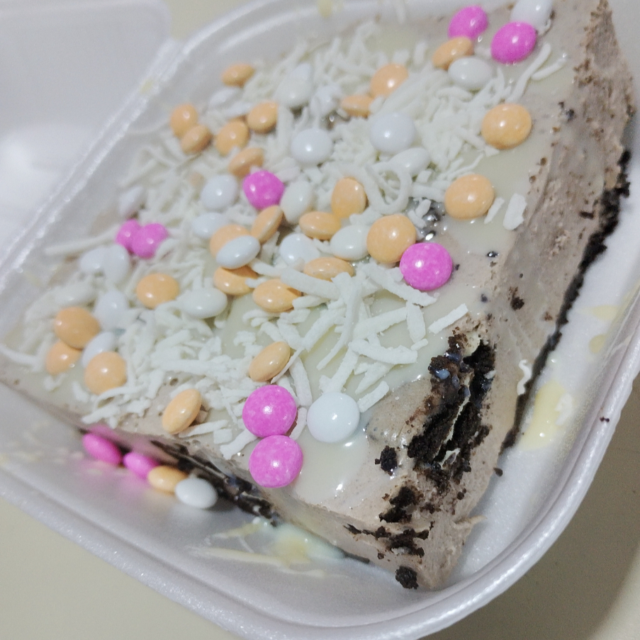 Cheesecake oreo con lechera coco rayado y topings al azar