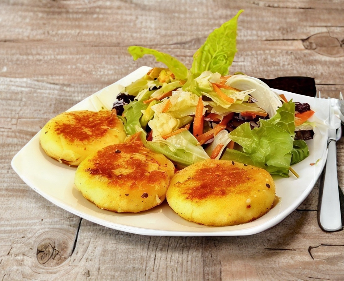 Tortas de Papa y Ensalada