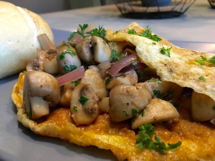 Omelet Relleno de Champigñones y Queso, Fresco