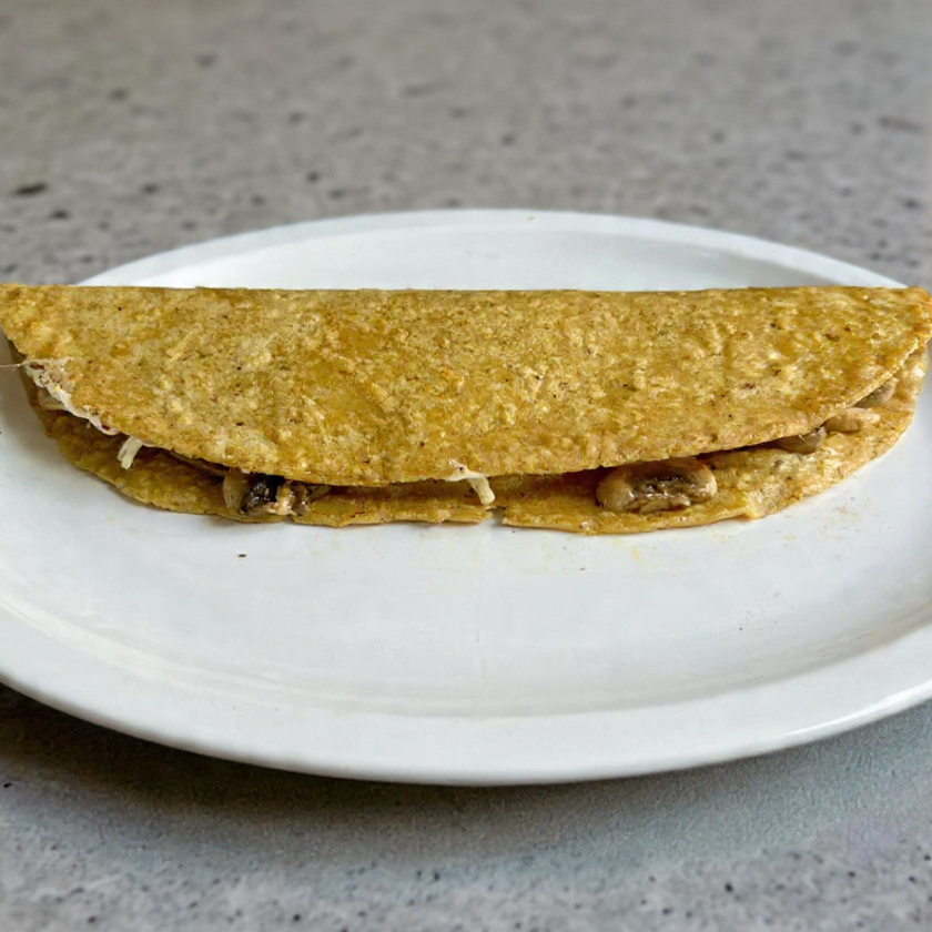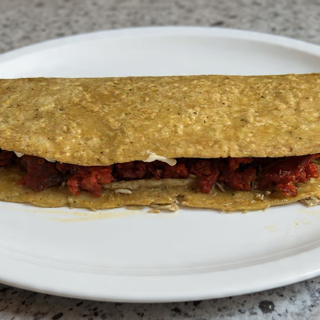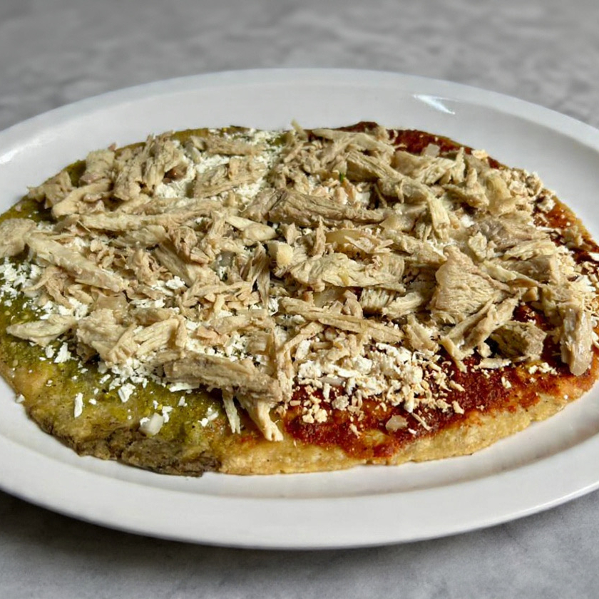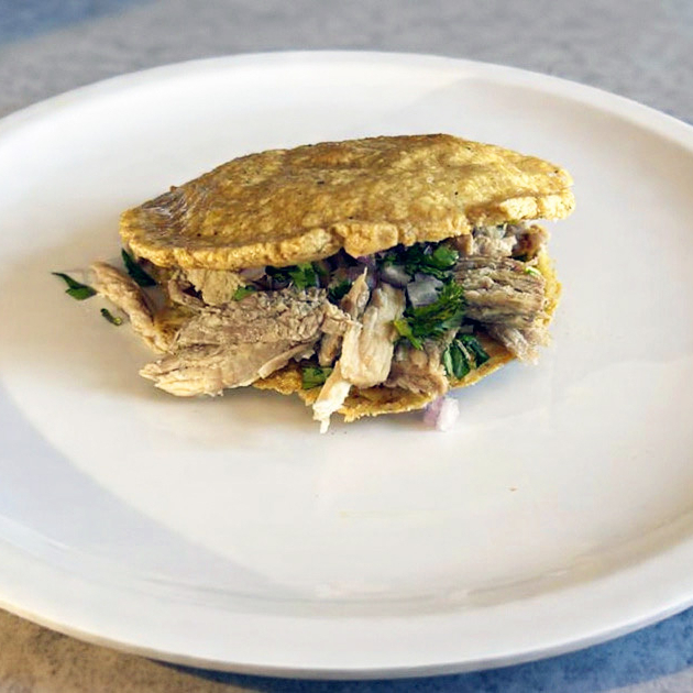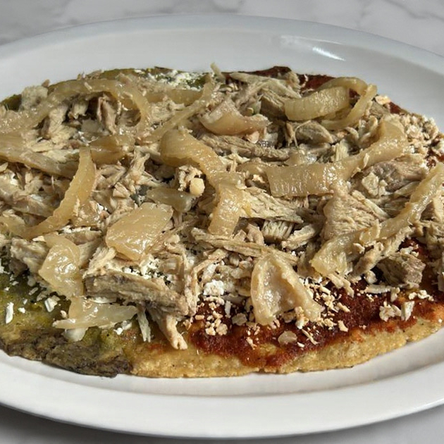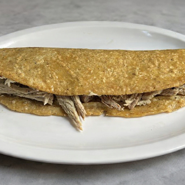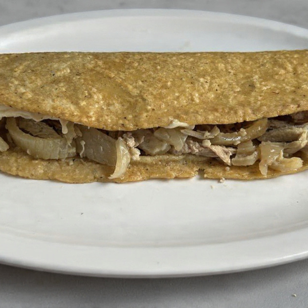 Gordita rellena de exiquisto chicharron elaborado en casa.