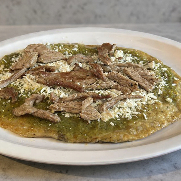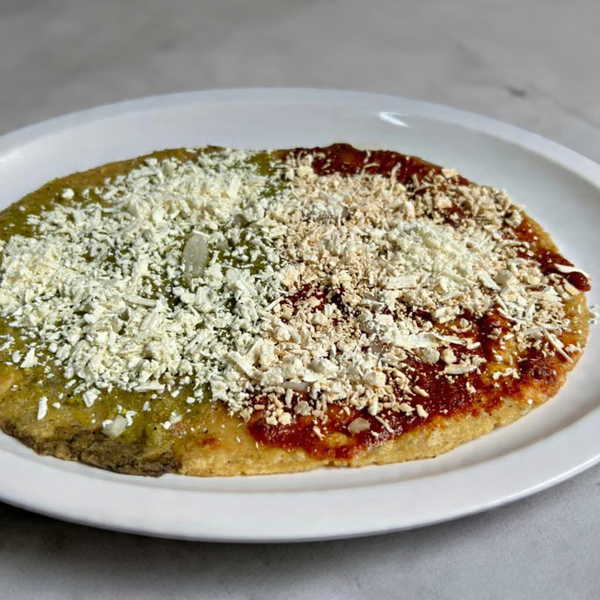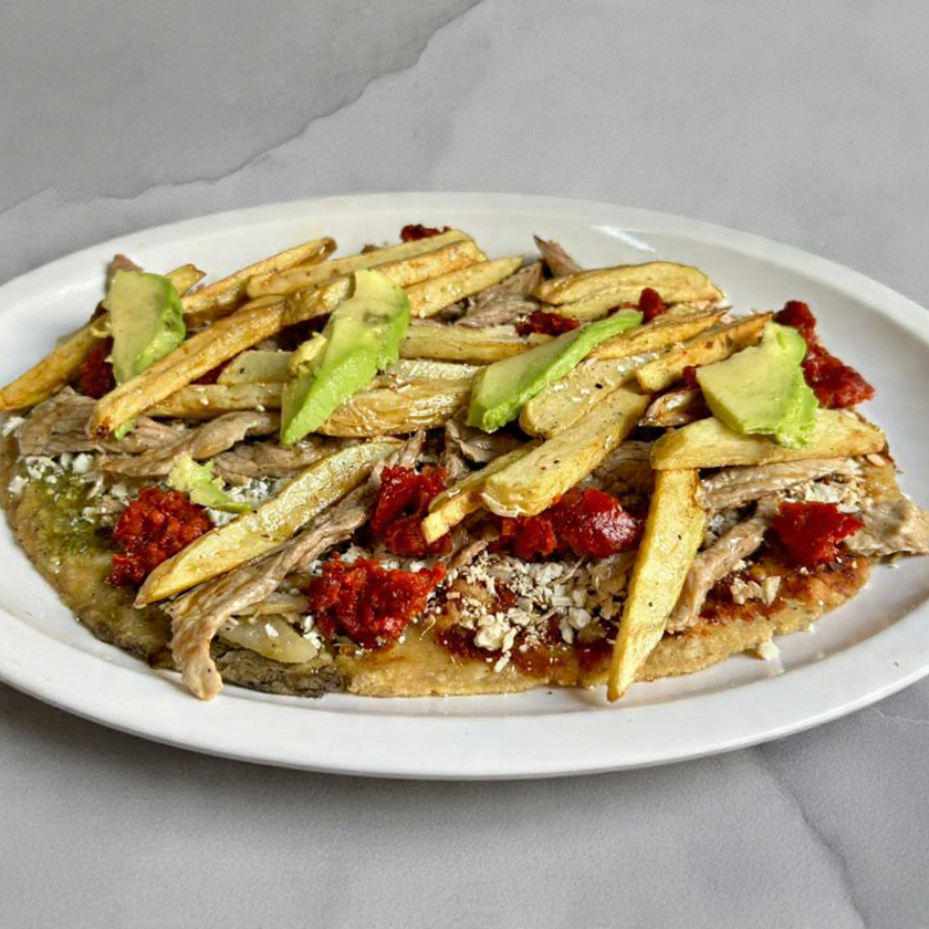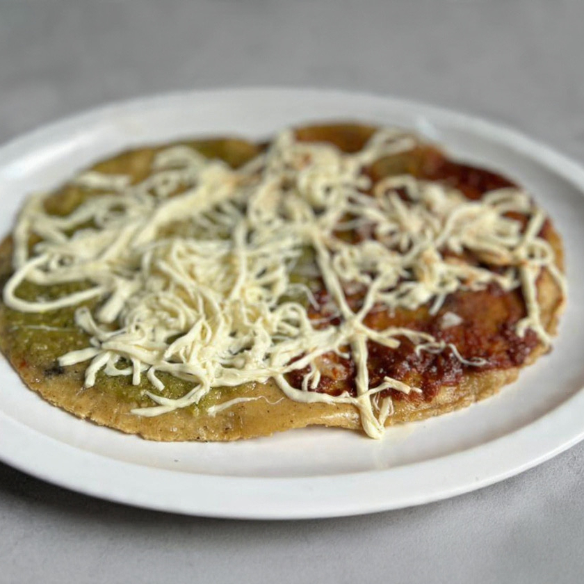 Memela con deliciosas papas,queso ranchero y salsa de tu eleccion.
