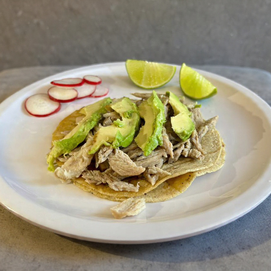 Incluye tortillas,limones,salsas,rabanos,pepino,cilantro y cebolla.