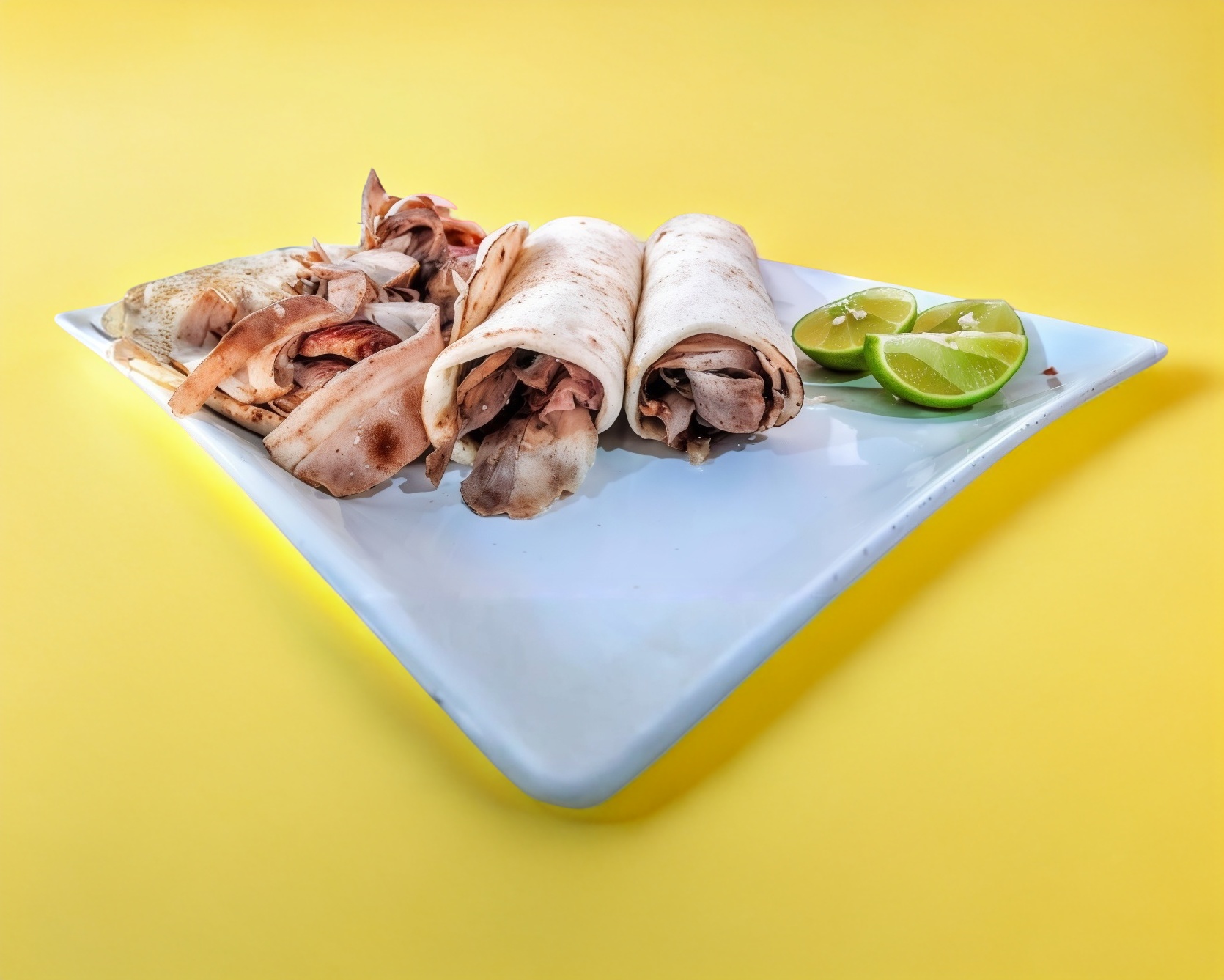 Pan árabe, carne, queso manchego, salsas y limones.