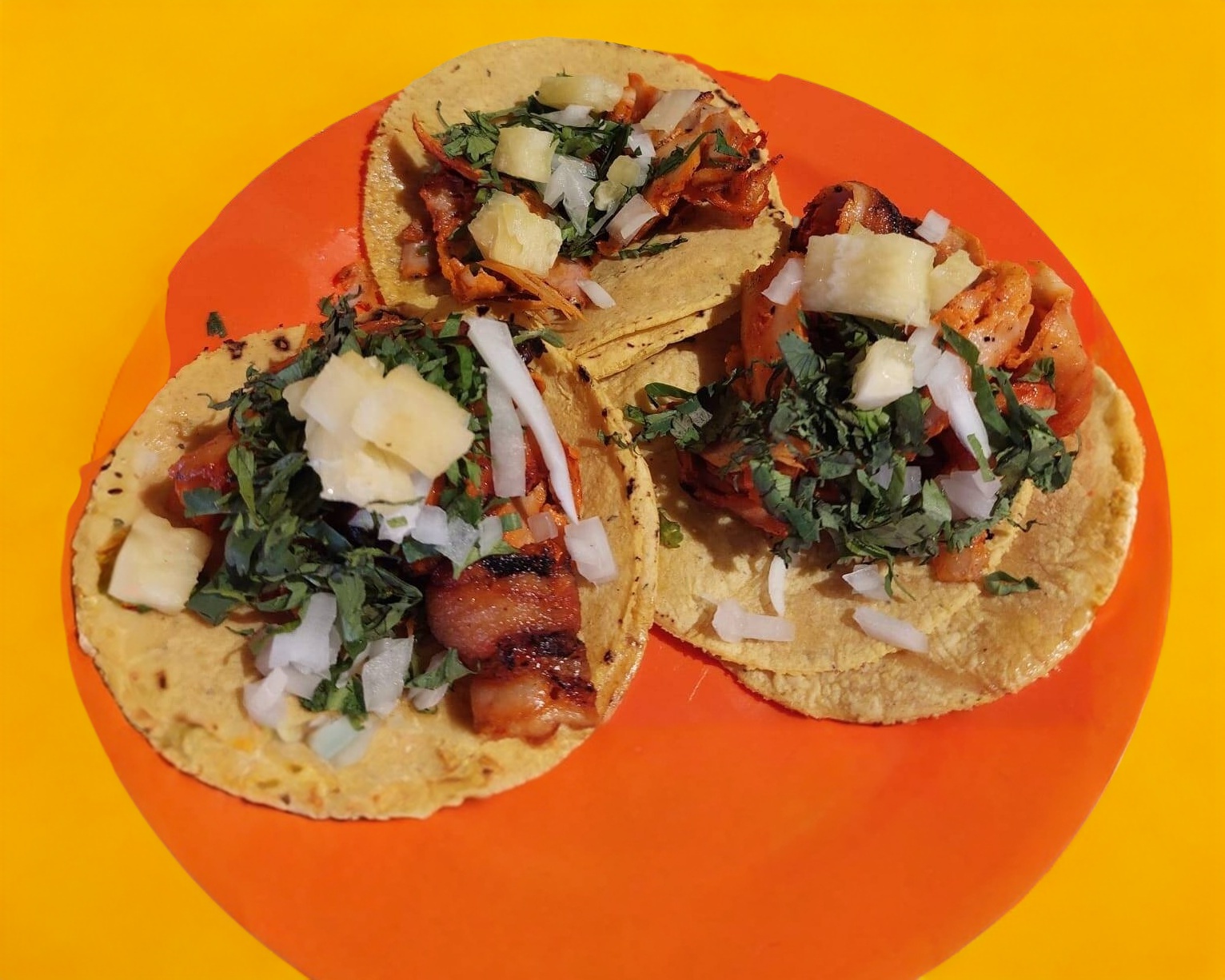 Tortilla de maíz más carne al pastor.