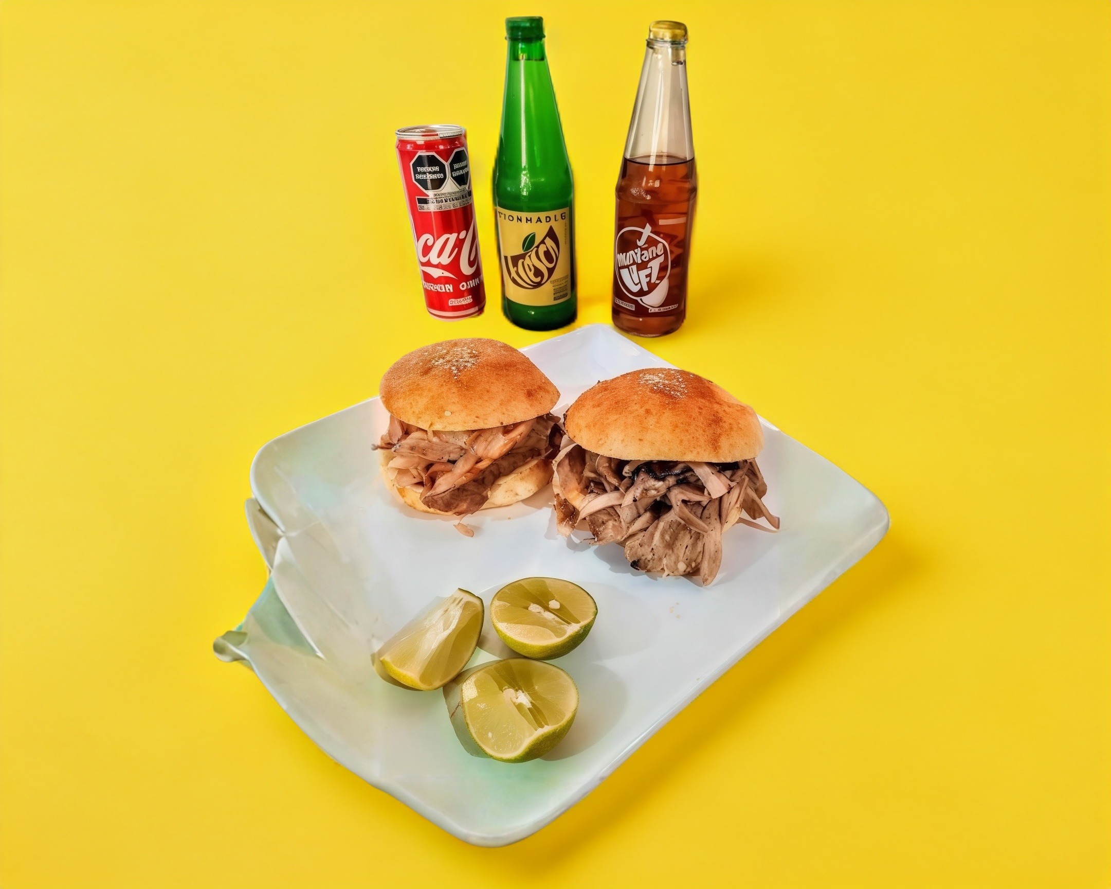 1/4 carne, tortilla, cemita, salsas y limones, refresco individual.