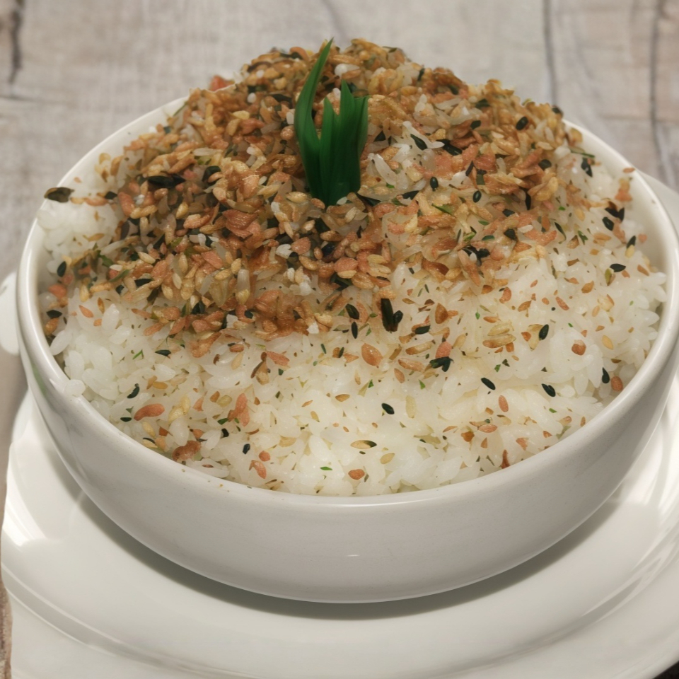 Variedad de toda la barra en corte mediano sobre un tazón de arroz.
