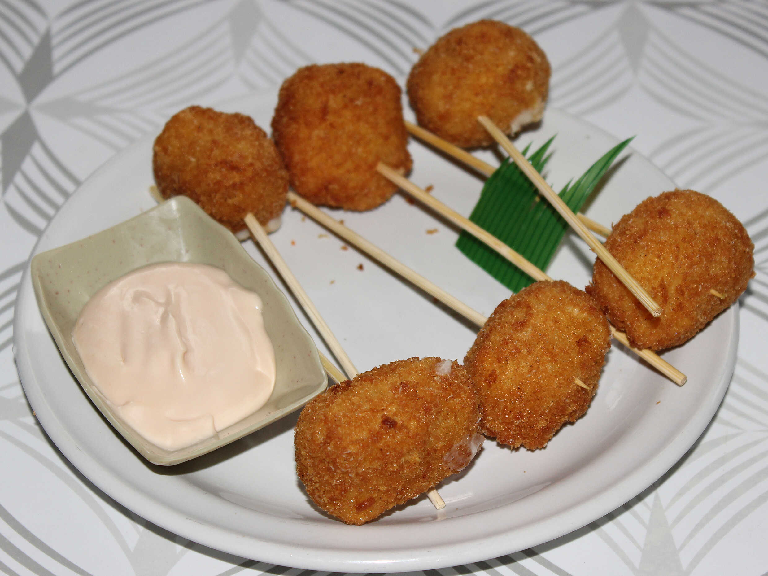 Bolas de arroz, rellenas de philadelphia o tampico.