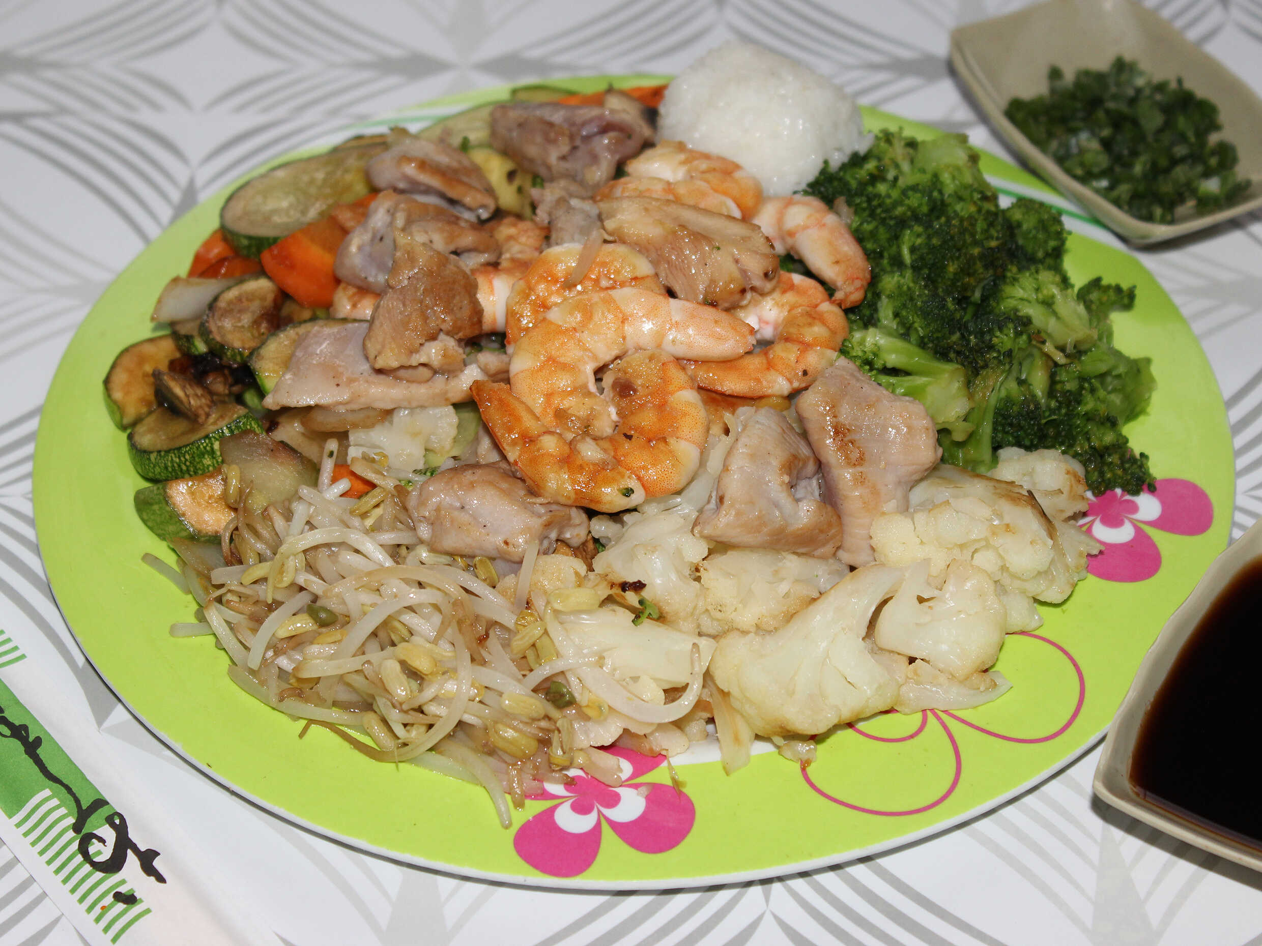 Teppanyaki Combinado Pollo, Arrachera y Camarón