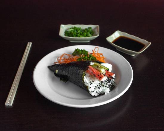 Cangrejo salmón, Camarón, Surimi Pepino Aguacate Alga por fuera