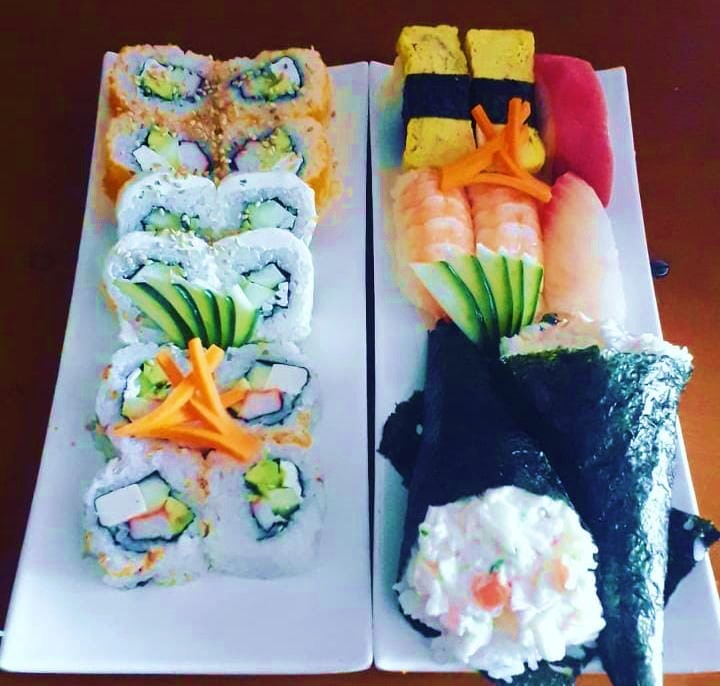 4 pzas Rollos California + 4 pzas Rollos Philadelphia + 4 pzas rollos maki especial + 2 Conos Tampico + 2 Nigiri Camarón +Nigiri Atún y 2 Nigiri de Cangrejo