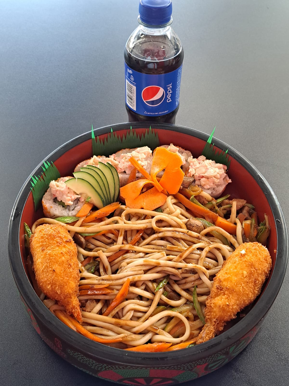 5 Pzas Rollo Philadelphia Maki*1 + 2 Pzas Kushiage Queso*1 + 2 Pzas Kushiage Plátano*1 + Media Porción Yakimeshi*1 + 1 Refresco (400ml)*1
