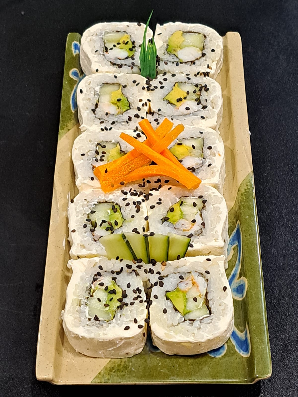 Camaron Aguacate Queso y Piel de Pepino por fuera