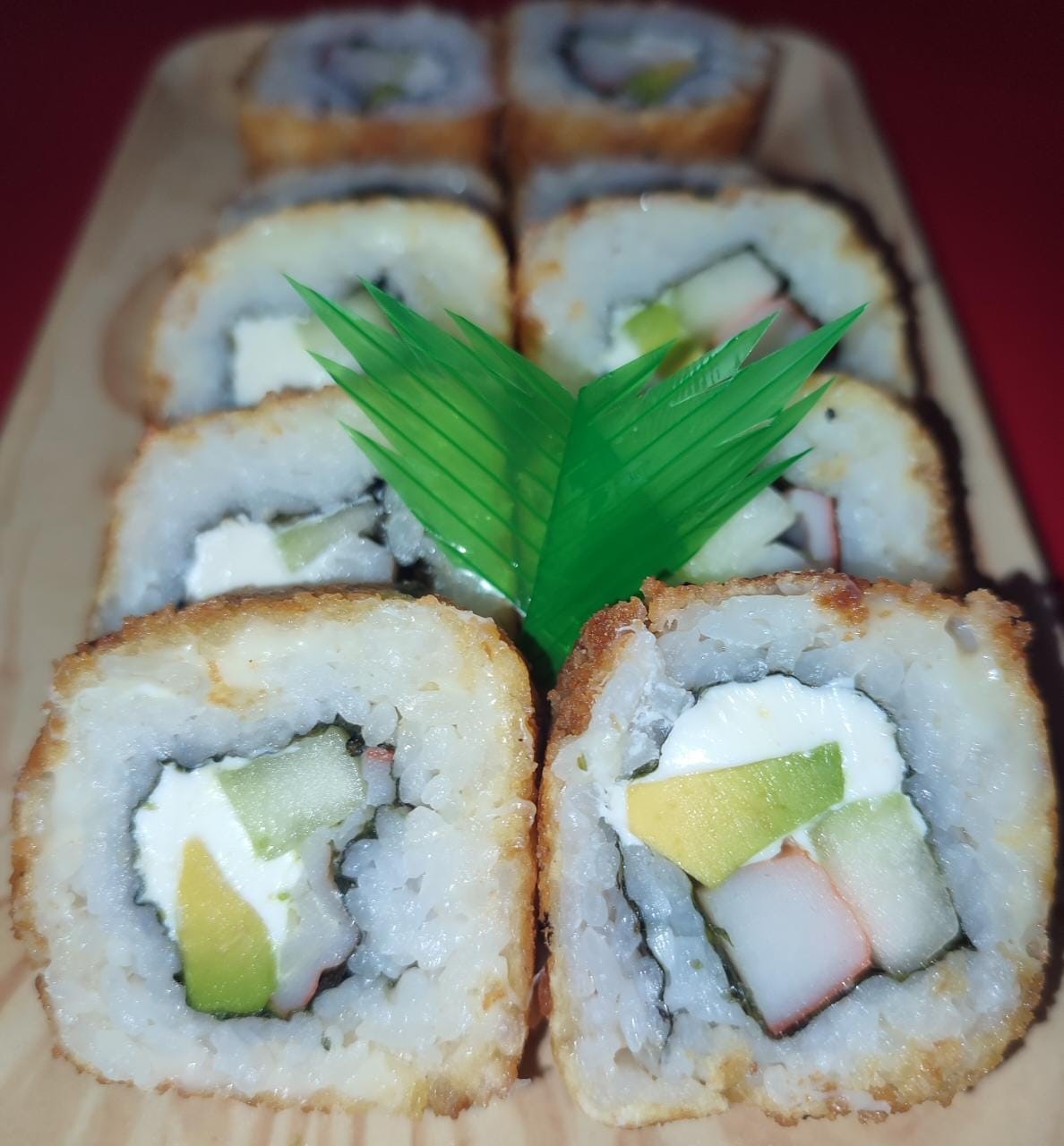 Cangrejo pepino aguacate queso philadelphia al centro cubierto de queso manchego y empanizado