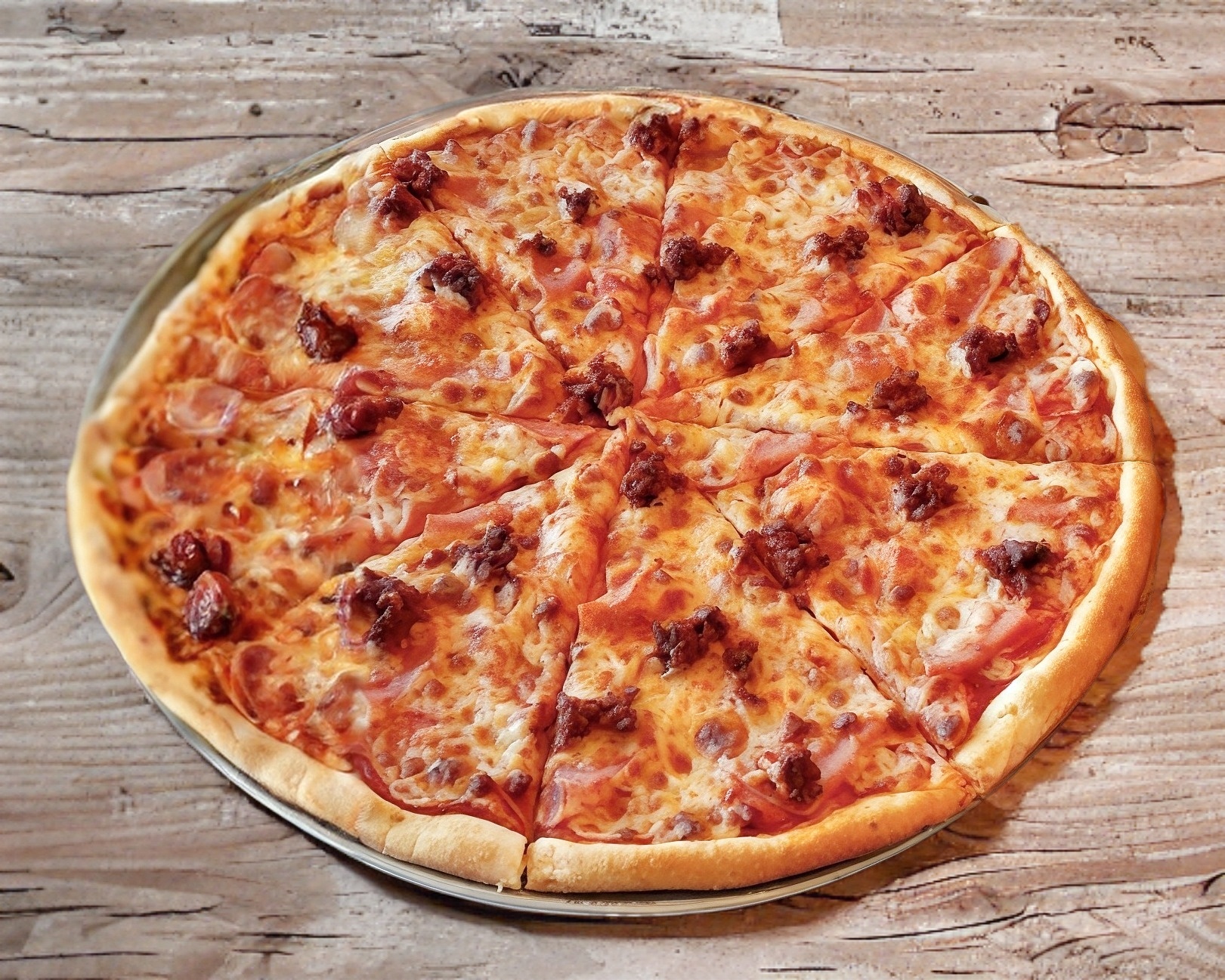 Jamón, peperonni y salchicha