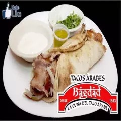 1 pan árabe con 70 gramos de carne árabe y 50 gramos de queso fundido.