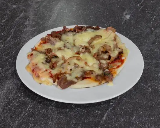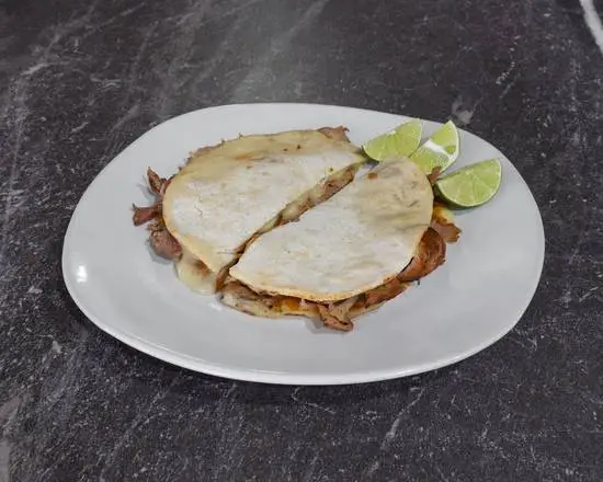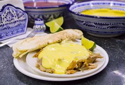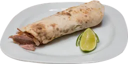 Tortilla de harina, frijoles, arroz, guacamole, queso y carne arabe