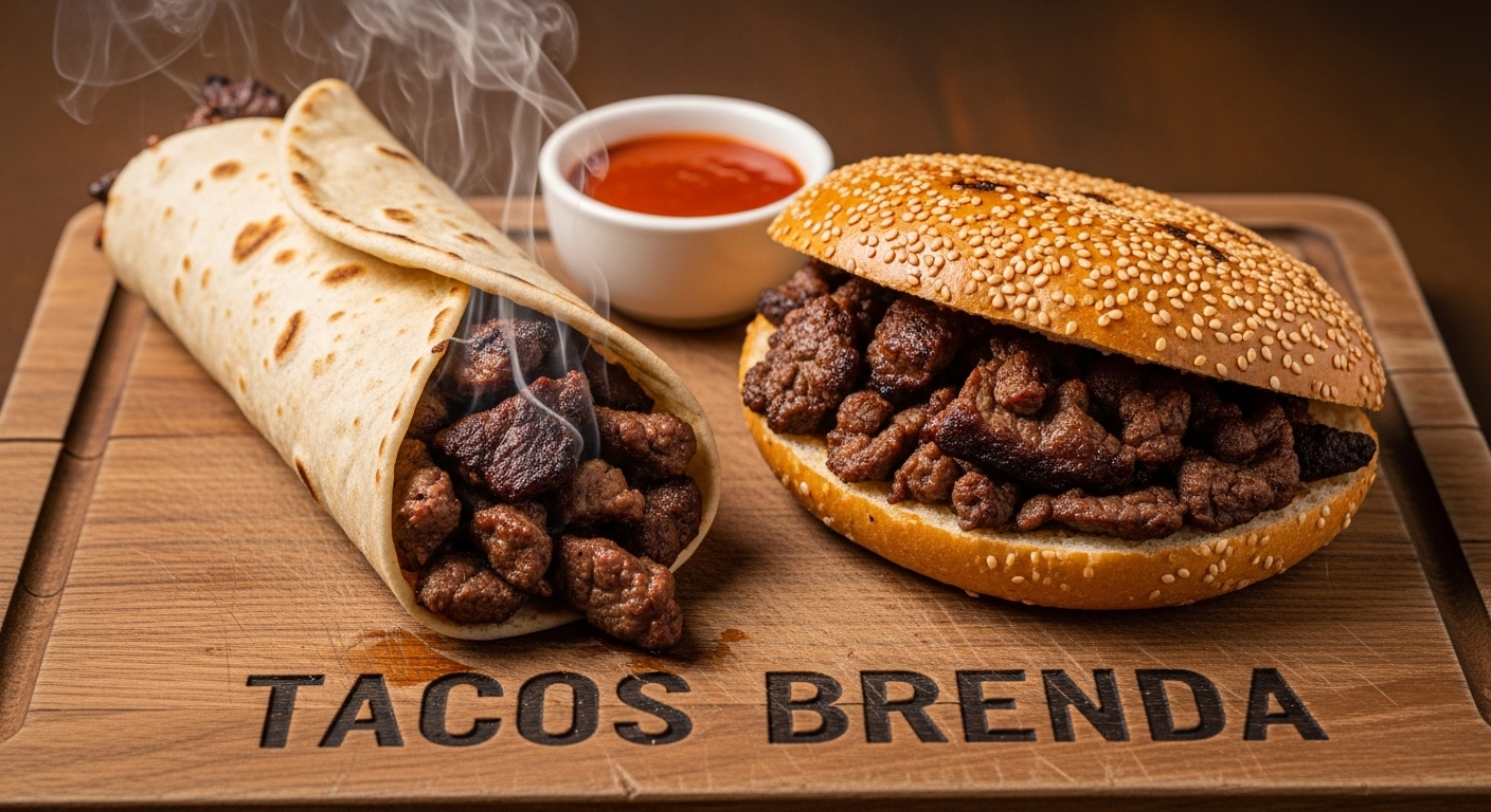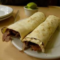 Taco con pan árabe, carne árabe al carbón y quesillo derretido.
