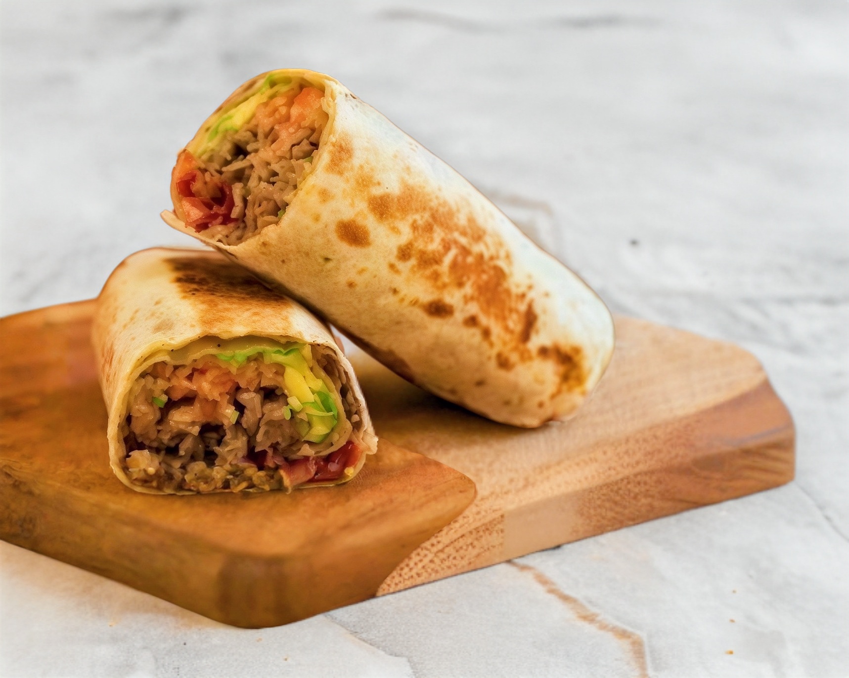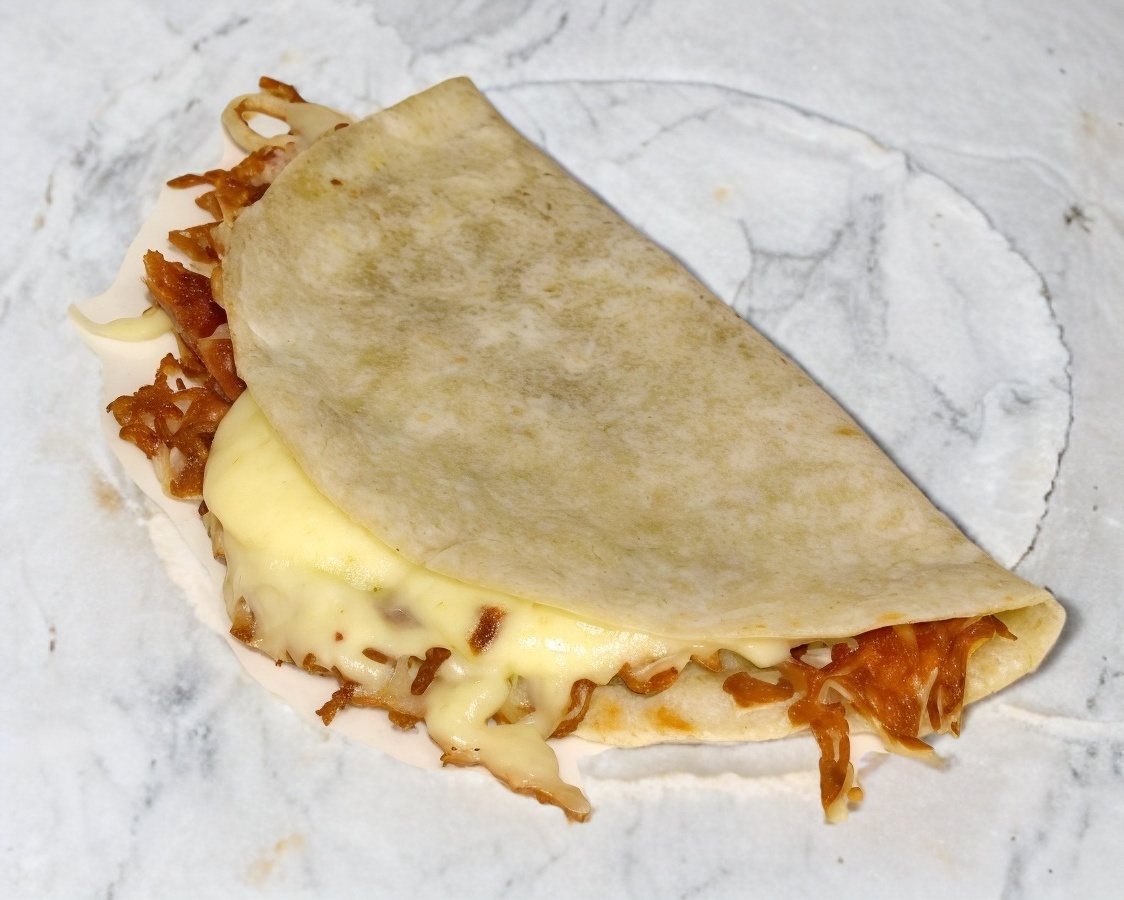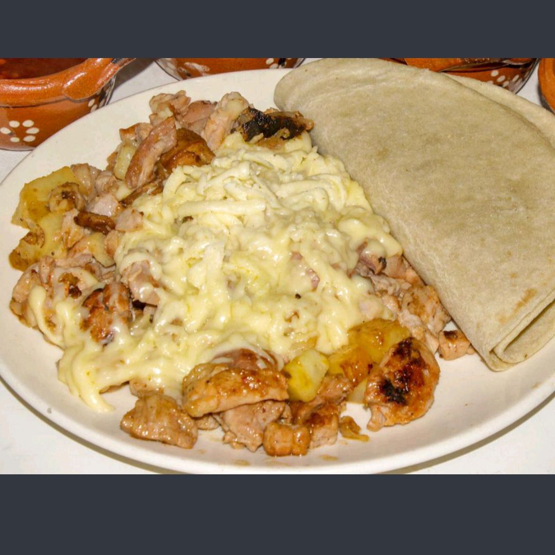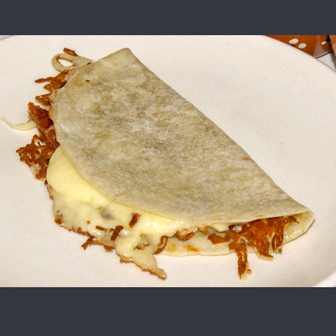 Carne al pastor o árabe, queso y 2 tortillas de harina.