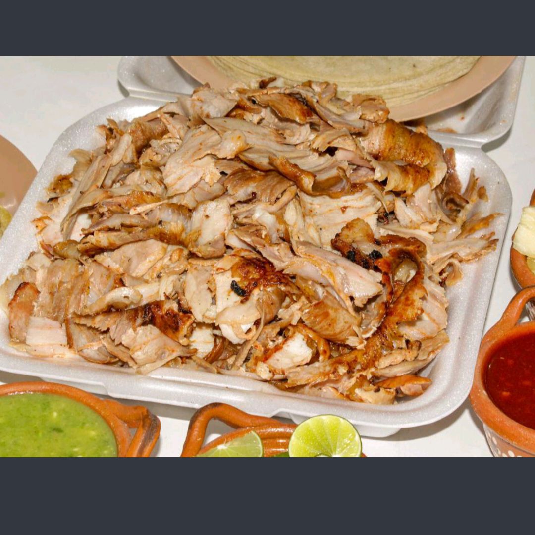 1/2 kilo de Carne al pastor, estilo único de tacos césar. Incluye: 10 tortillas de maíz, 5 tortillas de harina, salsa roja y verde, piña, limones y cebolla. Máximo para 2 personas