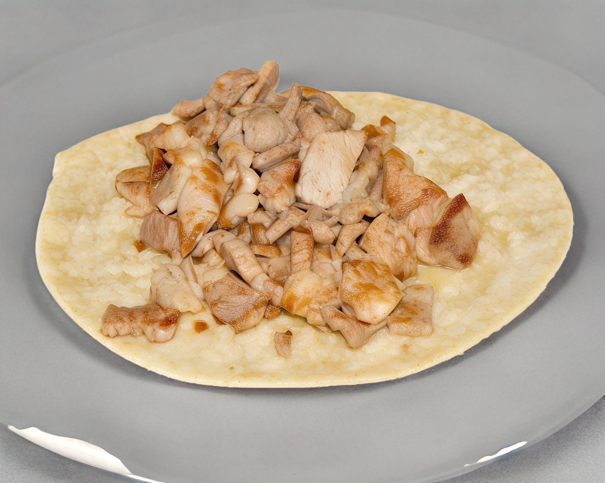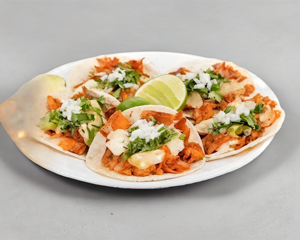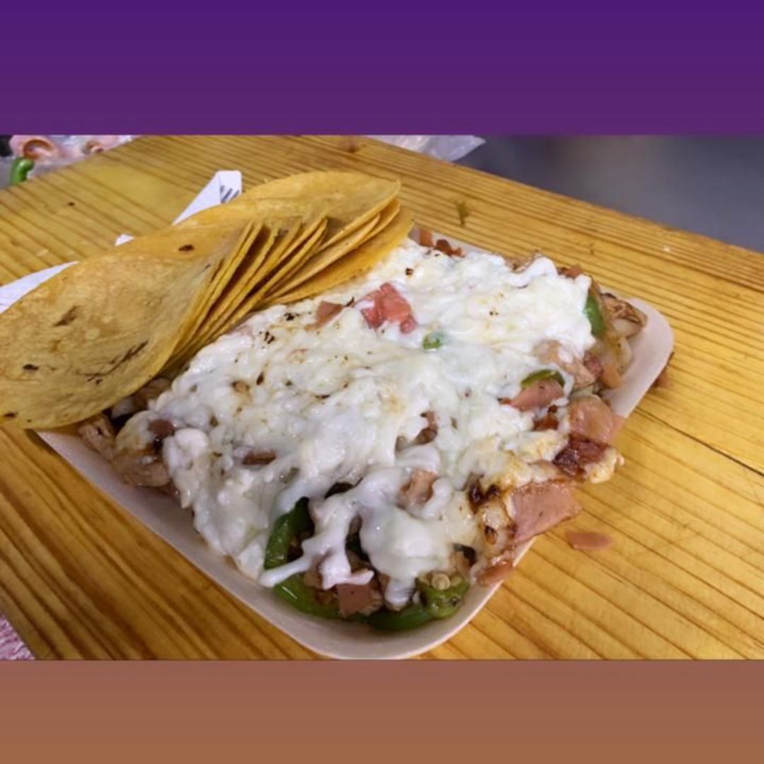 Carne al pastor, Queso, y 2 tortillas de Harina.