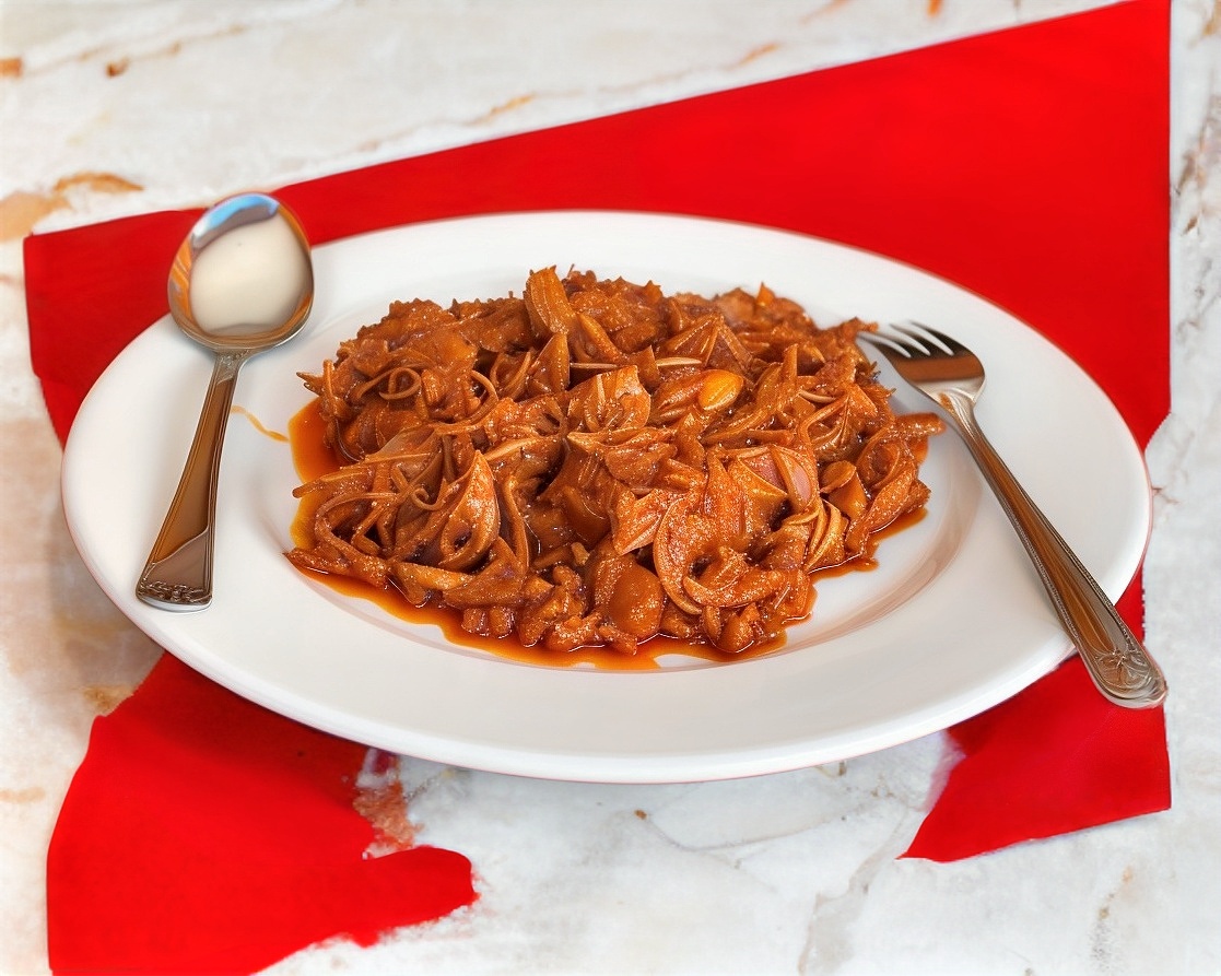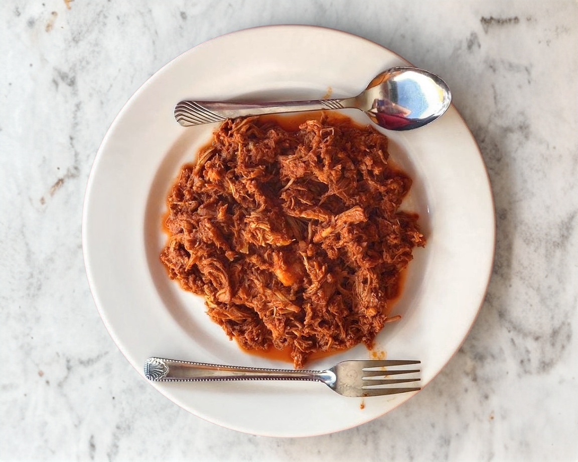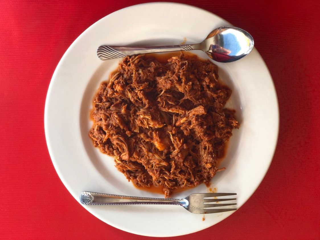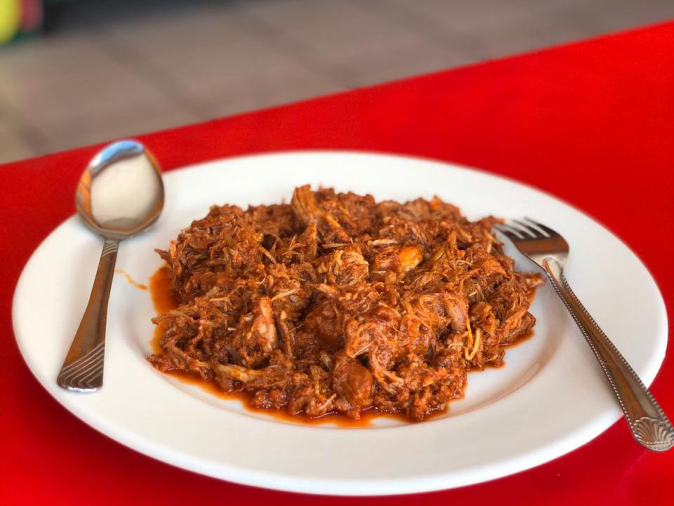 Platillo para 2 personas carne de res en mole rojo con salsa de jalapeño y chile abanero , cebolla, limón Piña. y 250 de tortilla