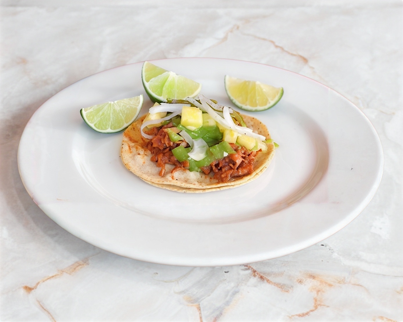 (Platillo personal) 5 Taco de Mixiote, salsa verde, limón, cebolla con habanero