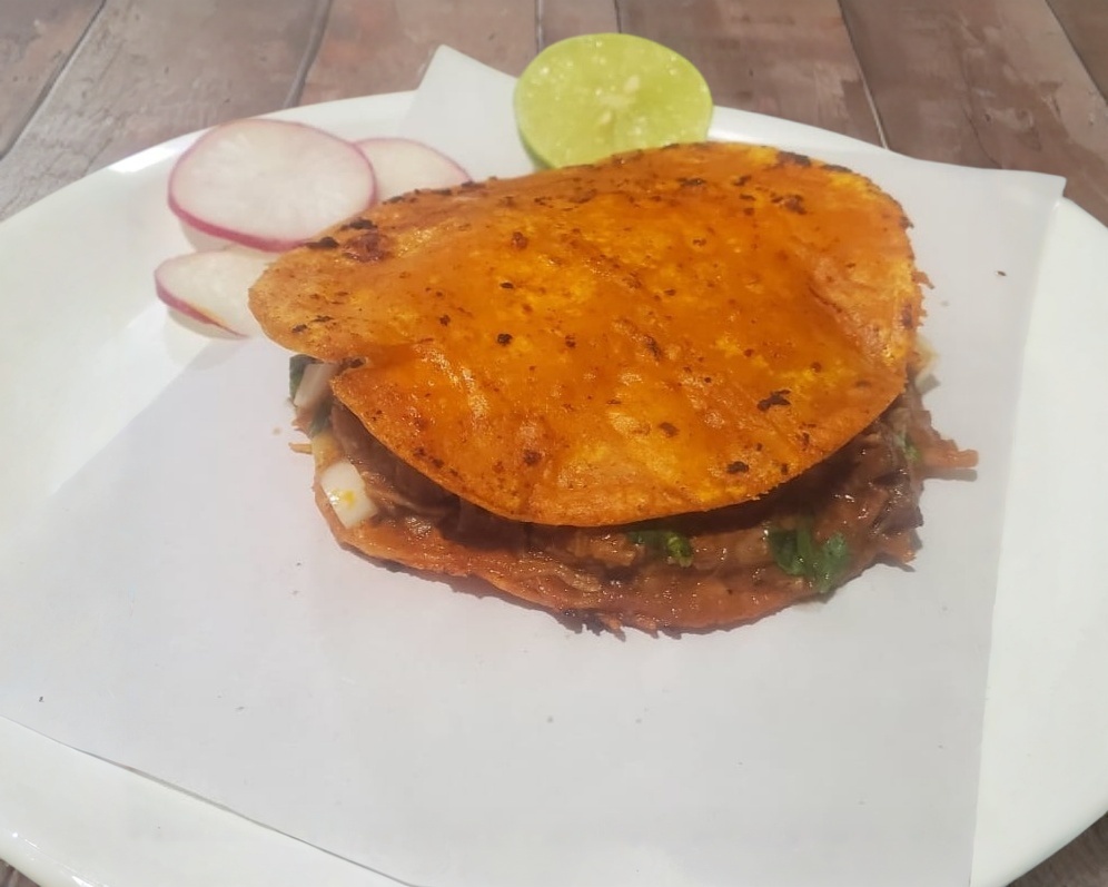 Queso, cilantro, cebolla, guacamole y doble tortilla.