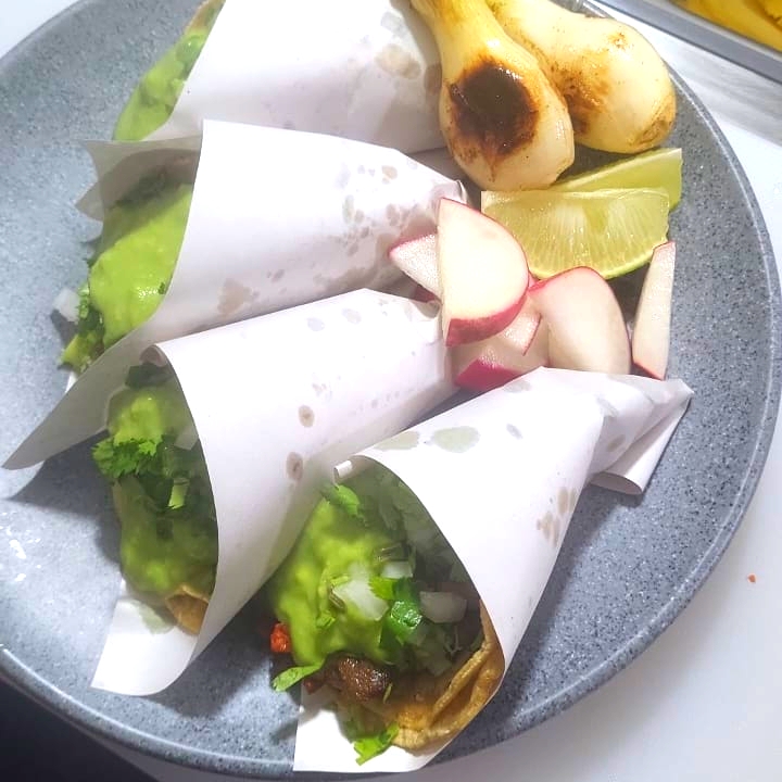 1 Pieza de taco. Elige una opción entre longaniza, asada o birria. Incluye cebolla, cilantro y guacamole. (Porción personal).