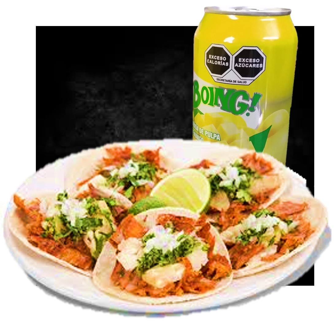 5 Taco al Pastor. + 1 Boing 355 ml