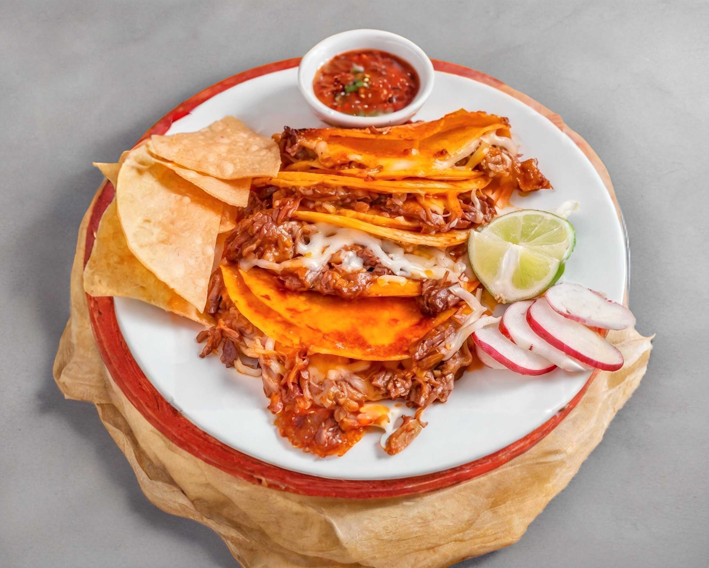 Taco en tortilla de maíz con queso, carne asada, longaniza o combinada.