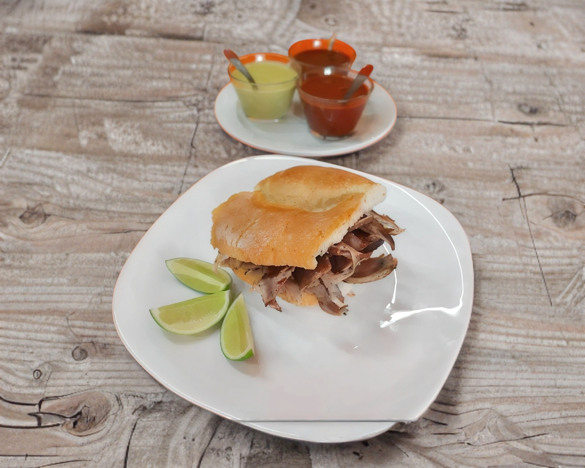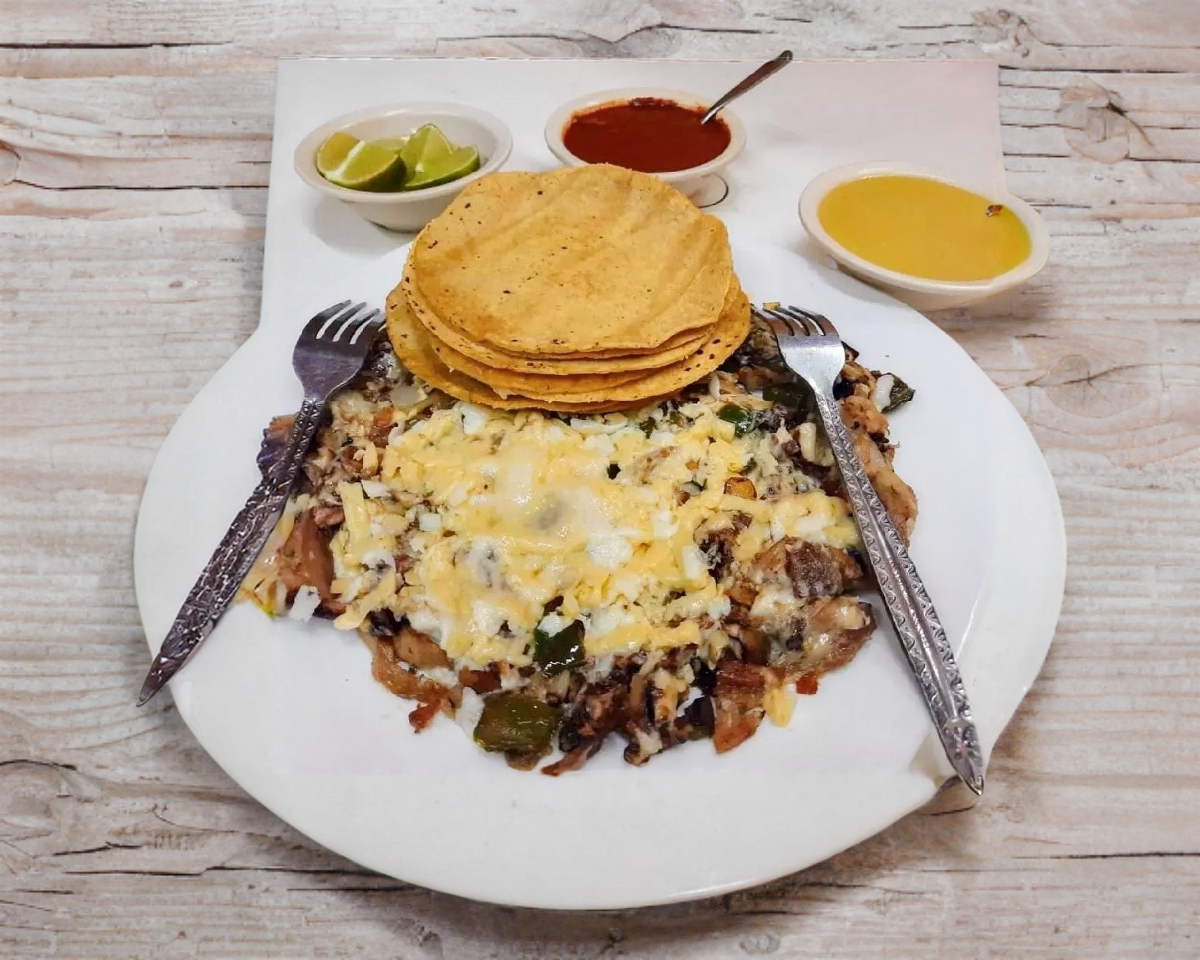 Prueba nuestra nueva especialidad, una combinación perfecta entre nuestra auténtica carne árabe, chile morrón, cebolla y nuestro delicioso queso gouda y asadero, acompañado de 6 tortillas de maíz, limones y las salsas especiales, de chile árbol y la de habanero, jalapeño, única combinación.