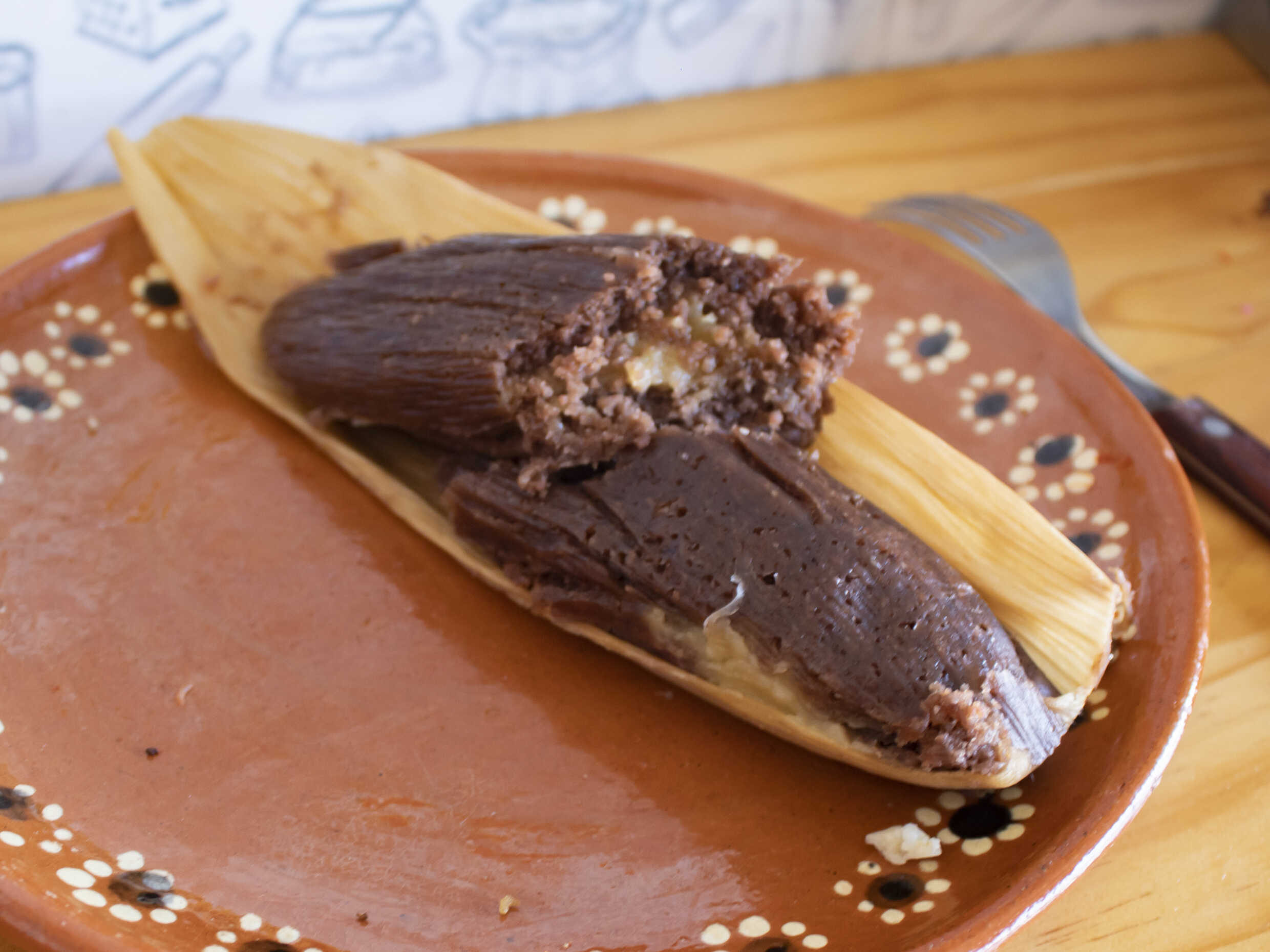 1 Tamal de Chocolate Con Crema personal( chocolate abuelita , relleno de crema )