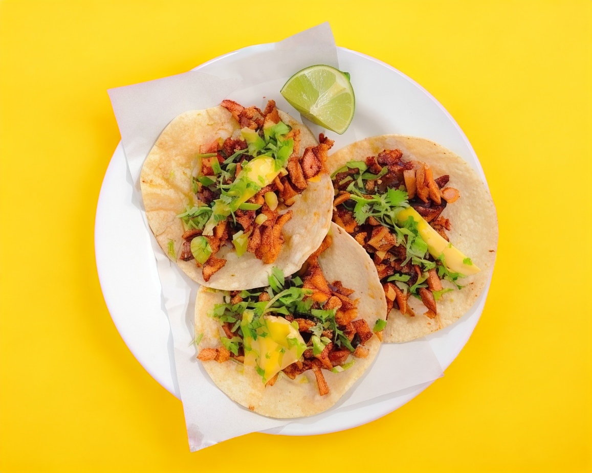 tortilla de maíz.carne al pastor y verdura