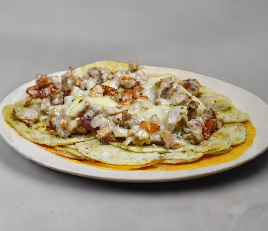 Bistec ,pimiento morron, cebolla, jitomte, chorizo, jamon, tocino y queso (Orden para 2 personas )