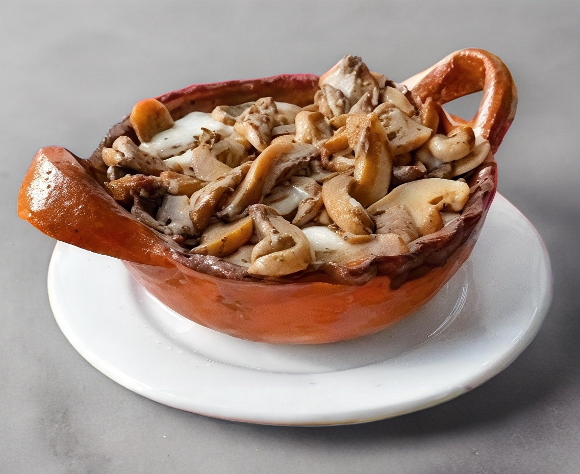 Bistec, tocino, champiñones , y queso
