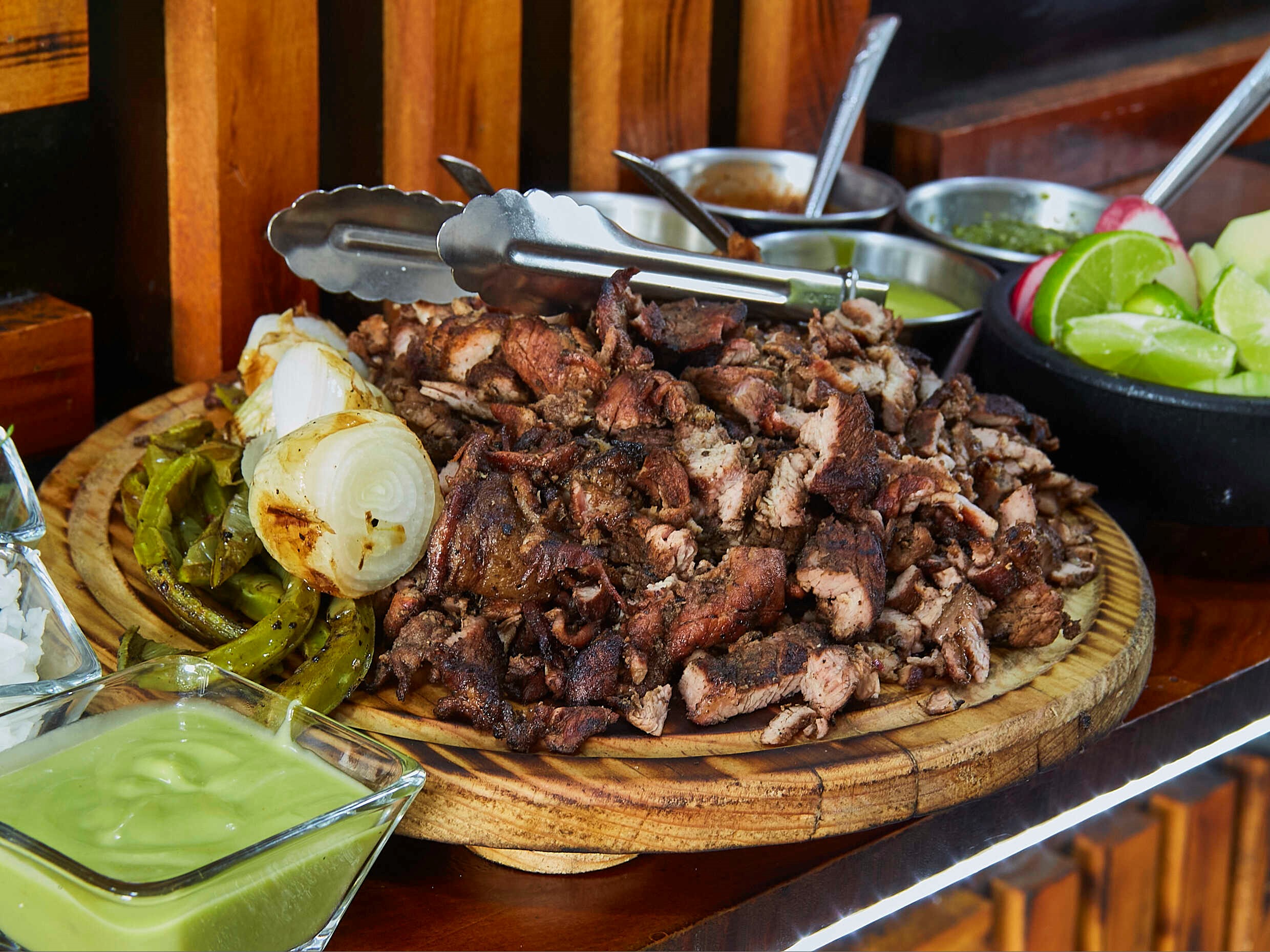 carne al pastor, salsa y limones